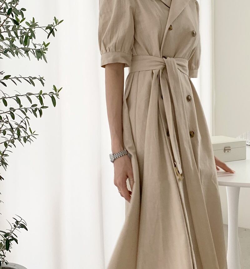 取り外し可能なベルト付きで、結ぶ位置やベルトの有無で手軽に印象を変えられるのも魅力。