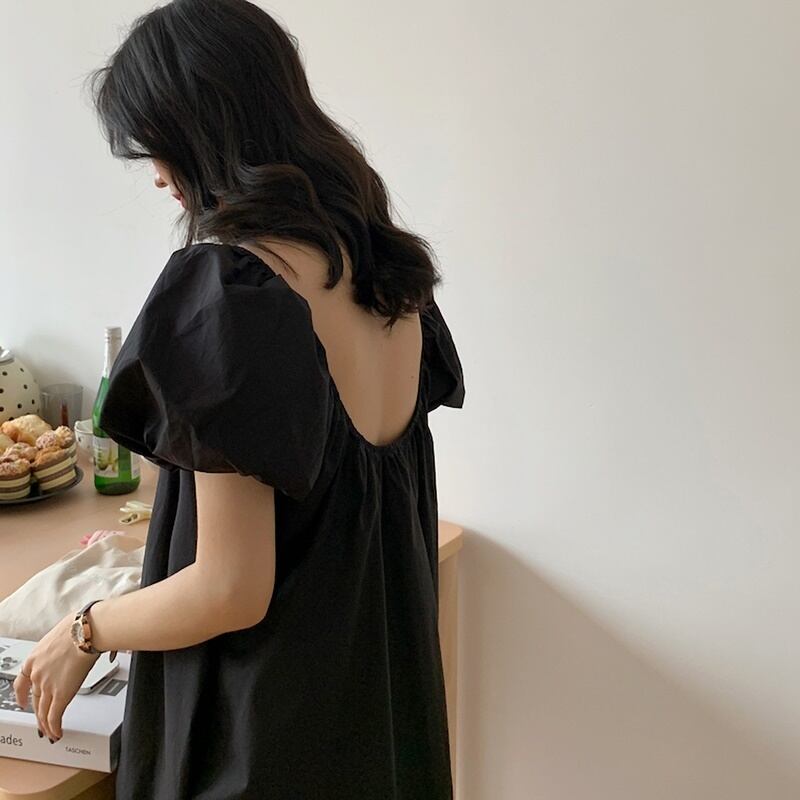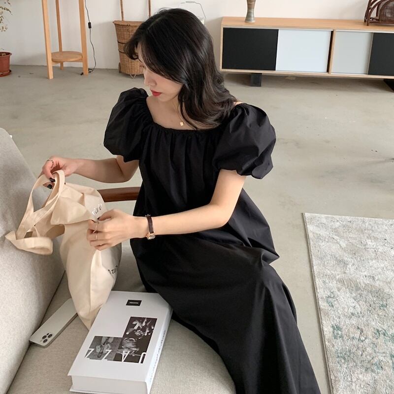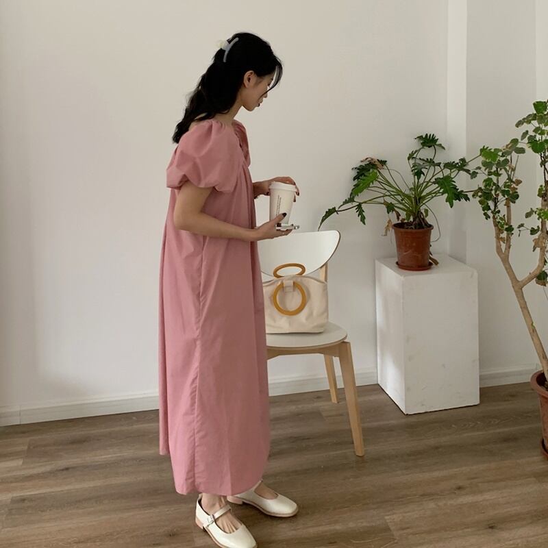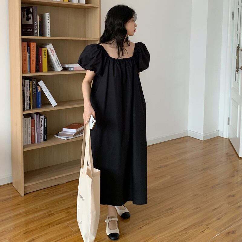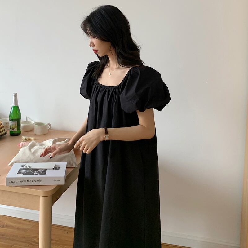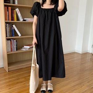 2カラー ゆったり スクエアネック 半袖 ワンピース *on519