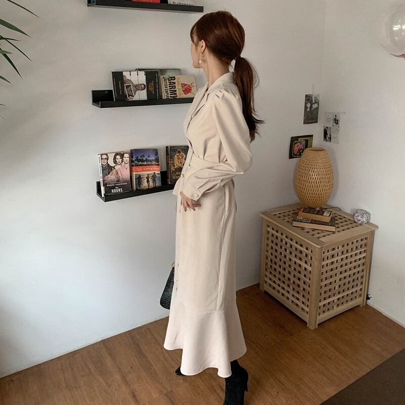 きちんと感のきれいめスタイルが決まる長袖ワンピースです。