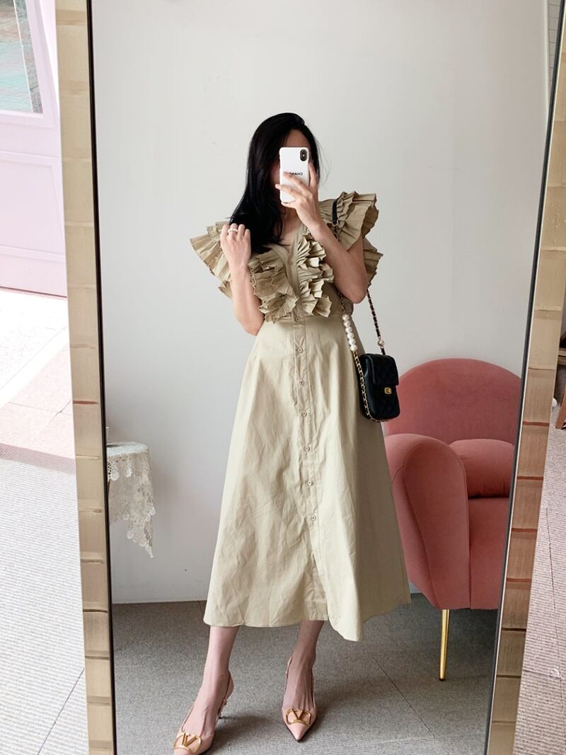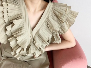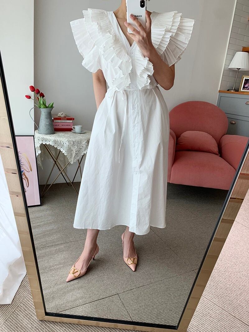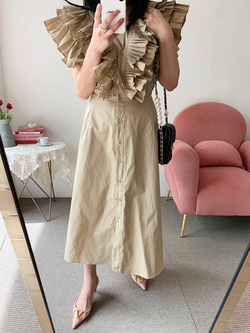 プリーツフリルを重ねた立体感のあるフリルワークが目を引くワンピースです。
