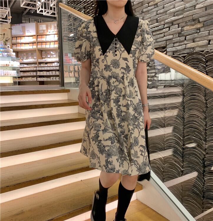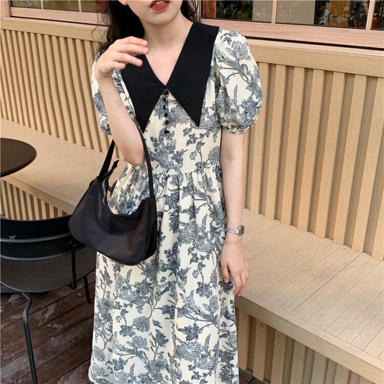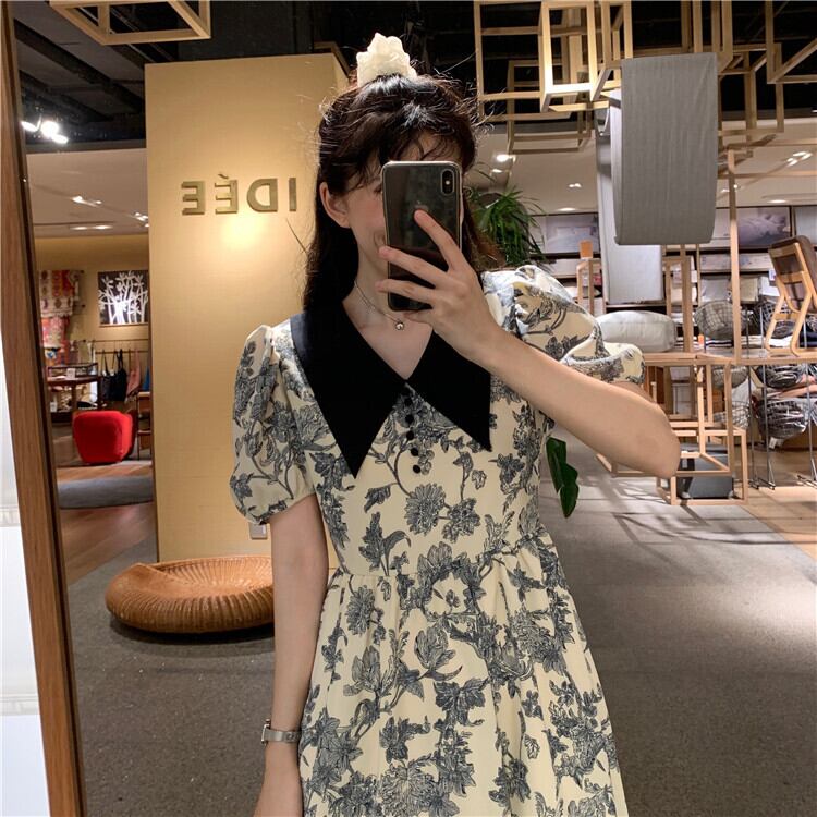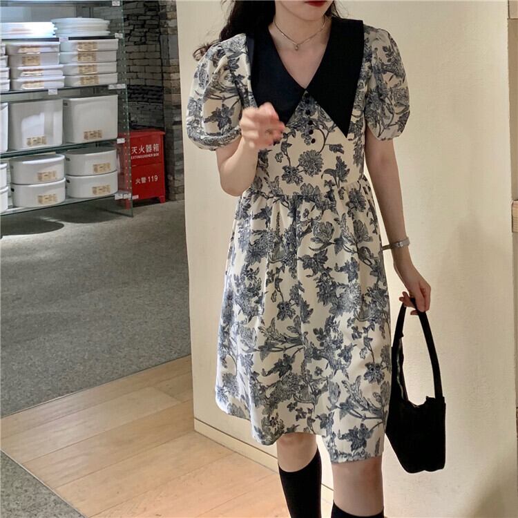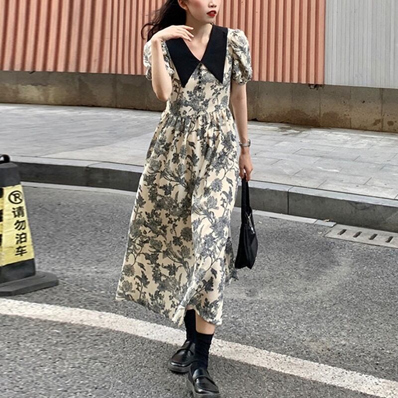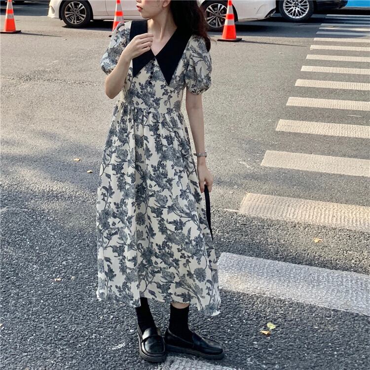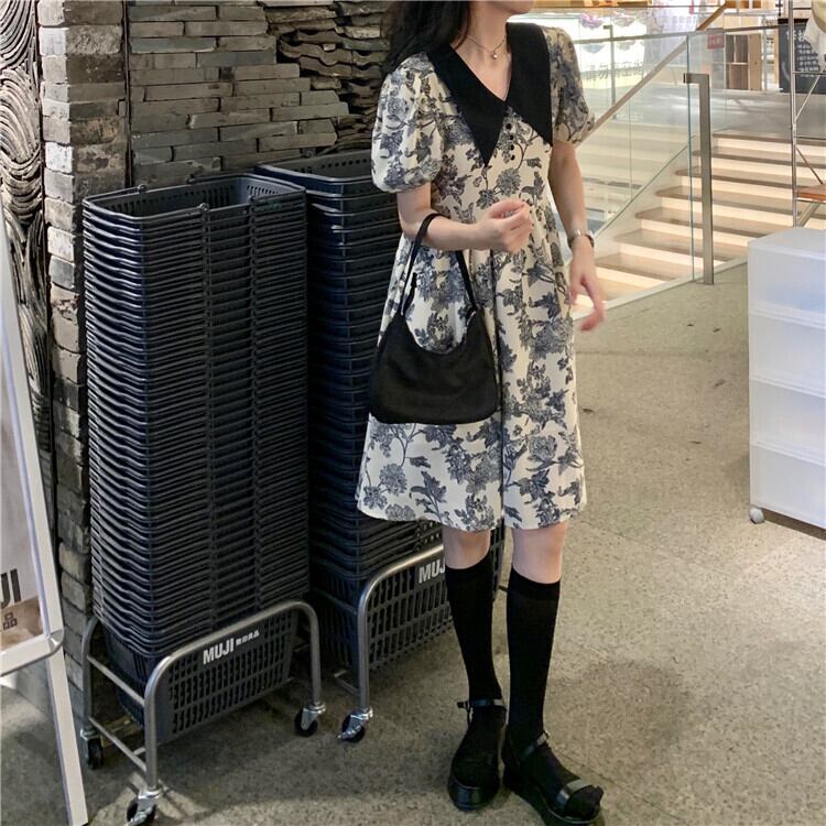 2パターン 花柄 Vネック ショート丈 ロング丈 半袖 ワンピース *on533