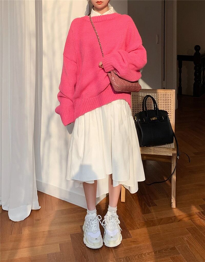 ベーシックカラーの無地で、シーンや気分に合わせて小物でアレンジしやすいのも魅力です。