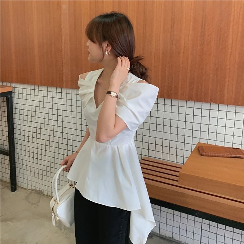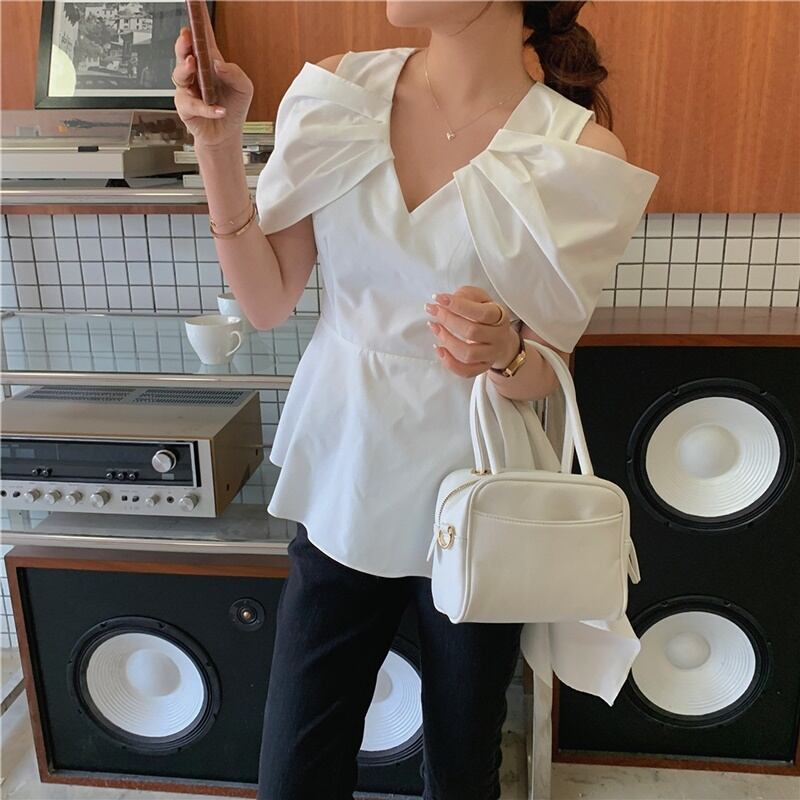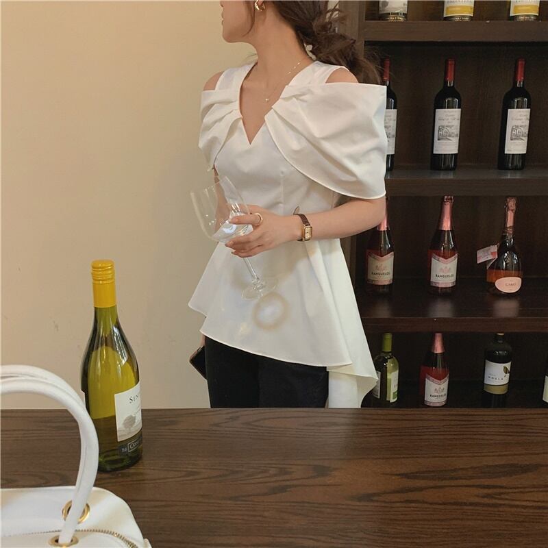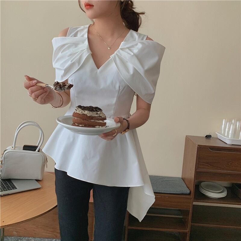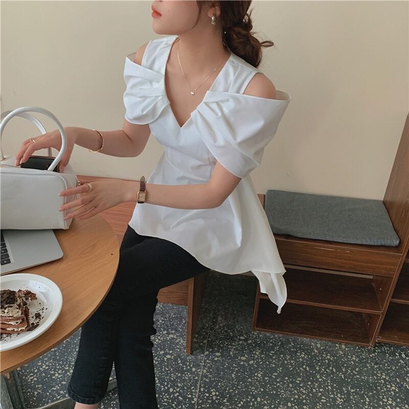 肩見せ Vネック 半袖 シャツ ブラウス *bl269