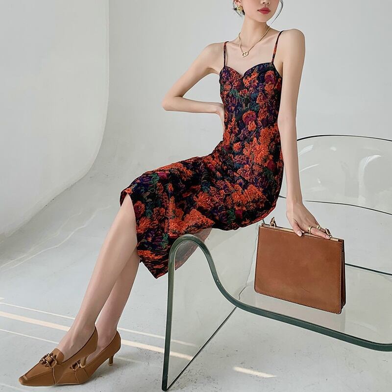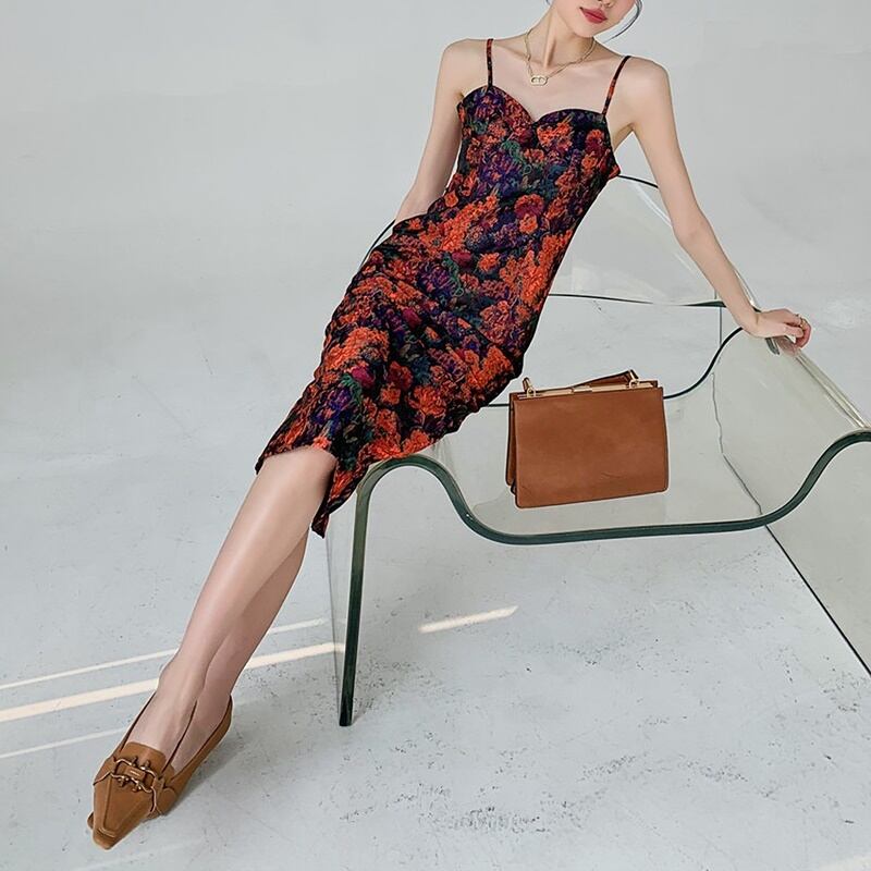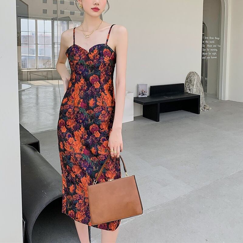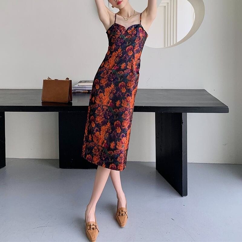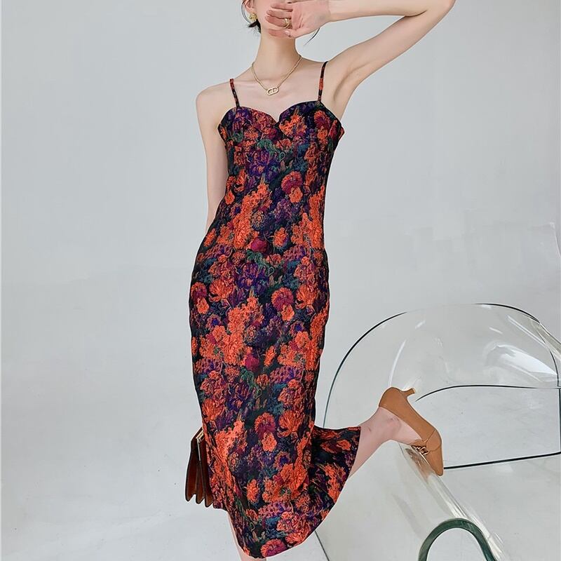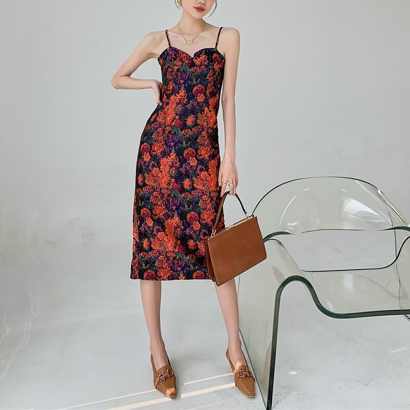 花柄 スリム ドレス ノースリーブ ワンピース *on539