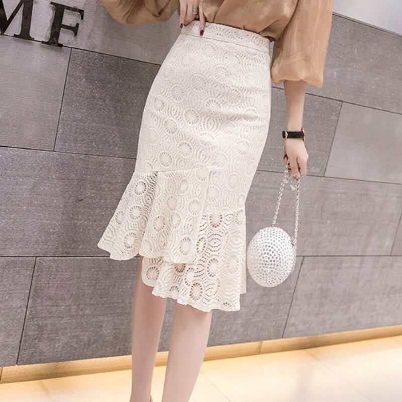 2カラー アシンメトリー レース ハイウエスト スカート *sk131