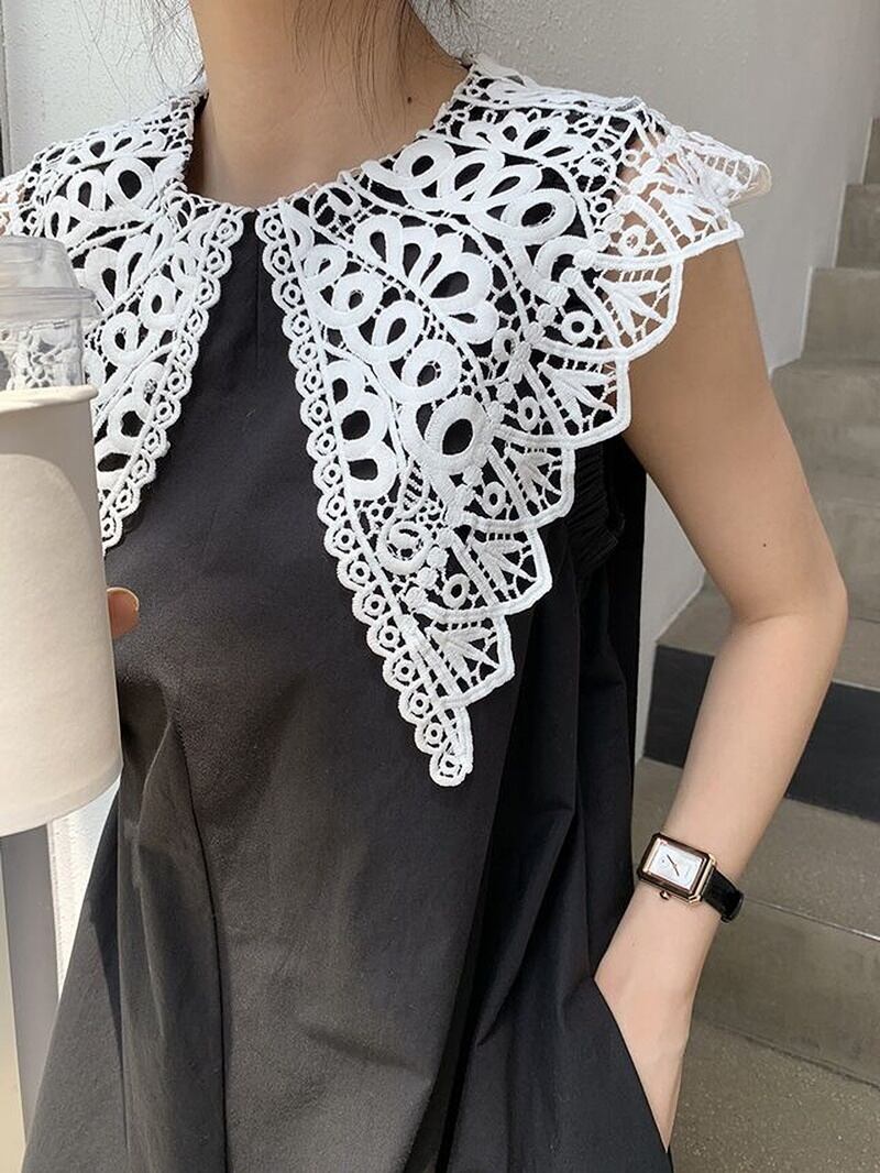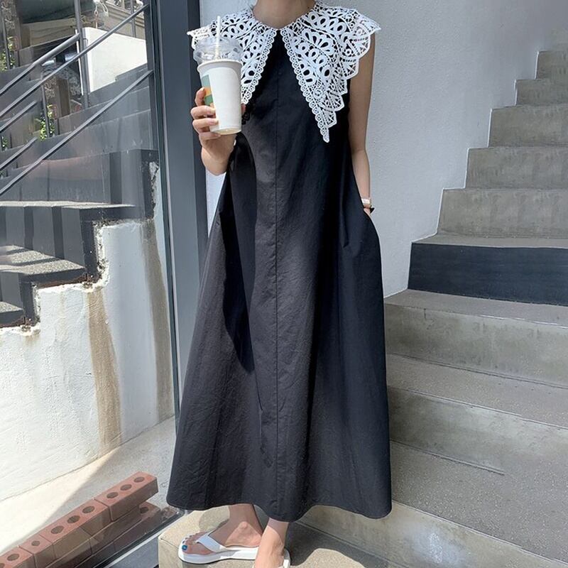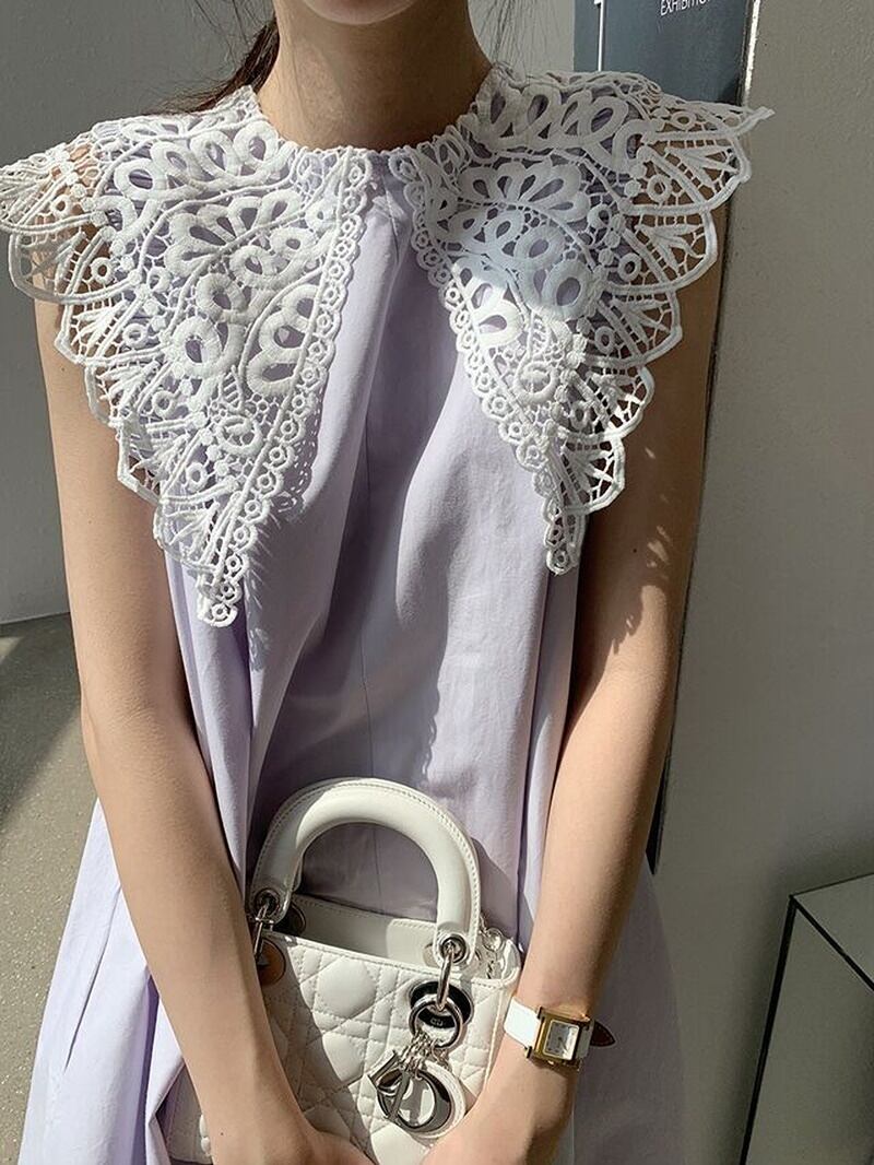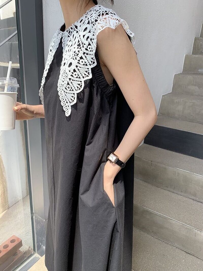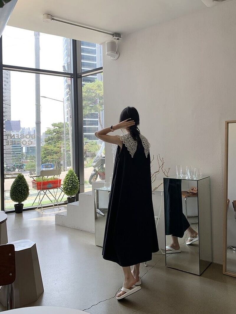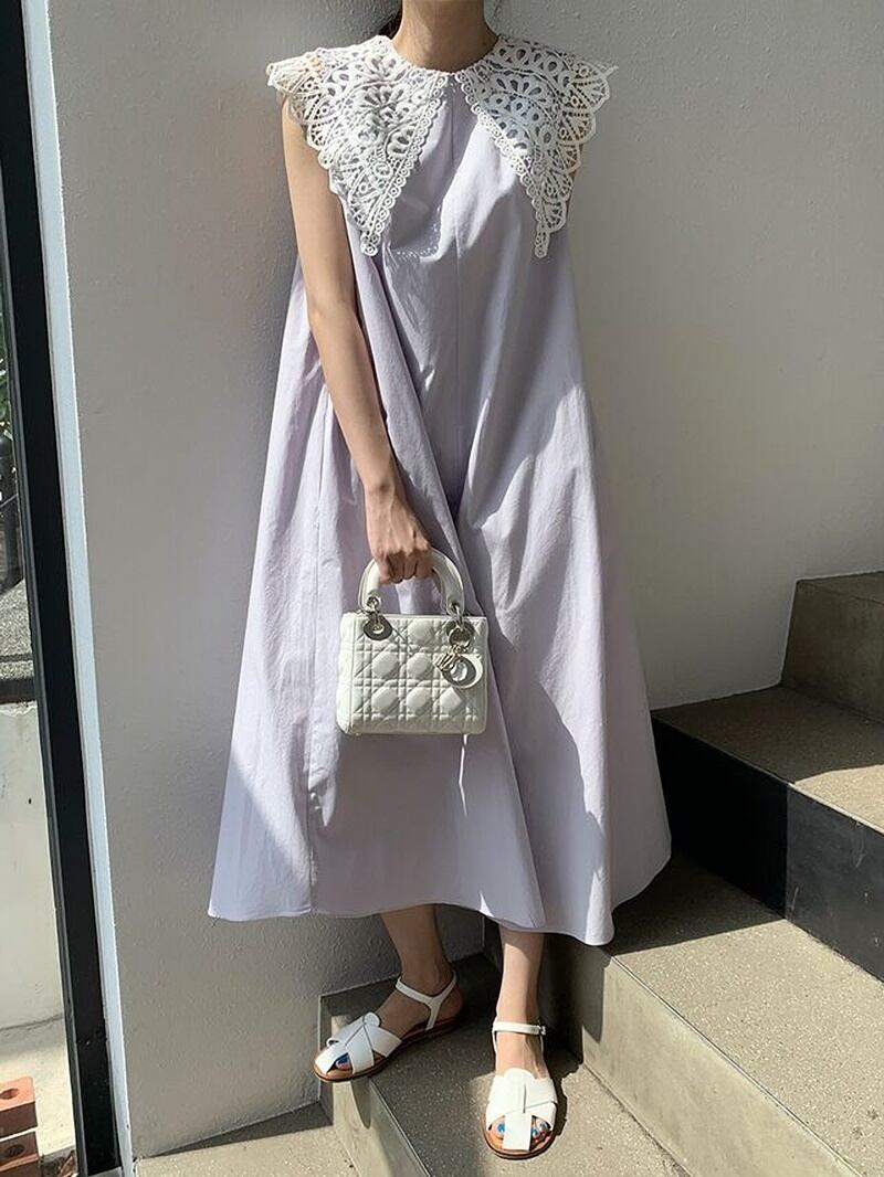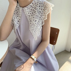 2カラー レース ラウンドネック ノースリーブ ワンピース *on547