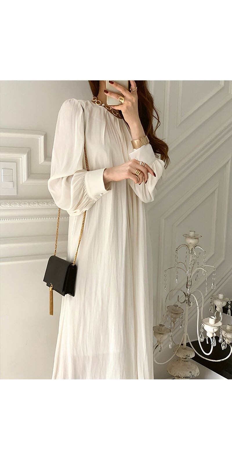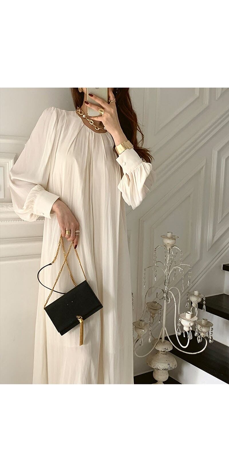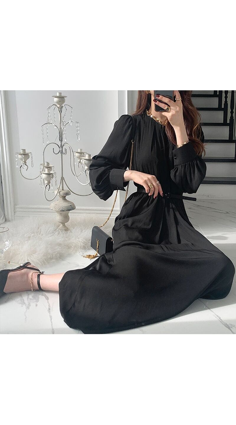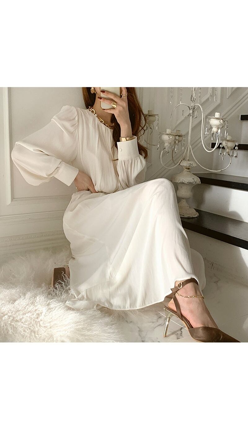 エレガントな長袖ワンピースです。