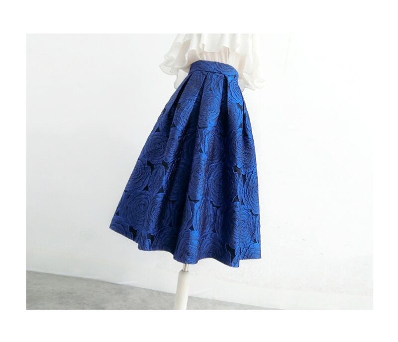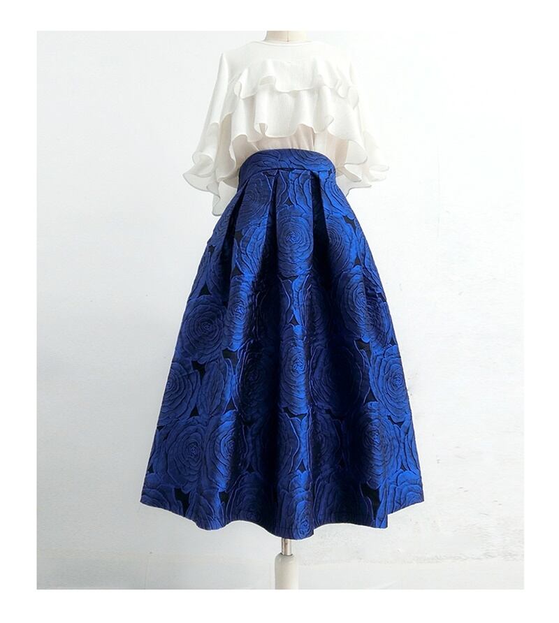 花柄 エンボス ハイウエスト Aライン スカート *sk140