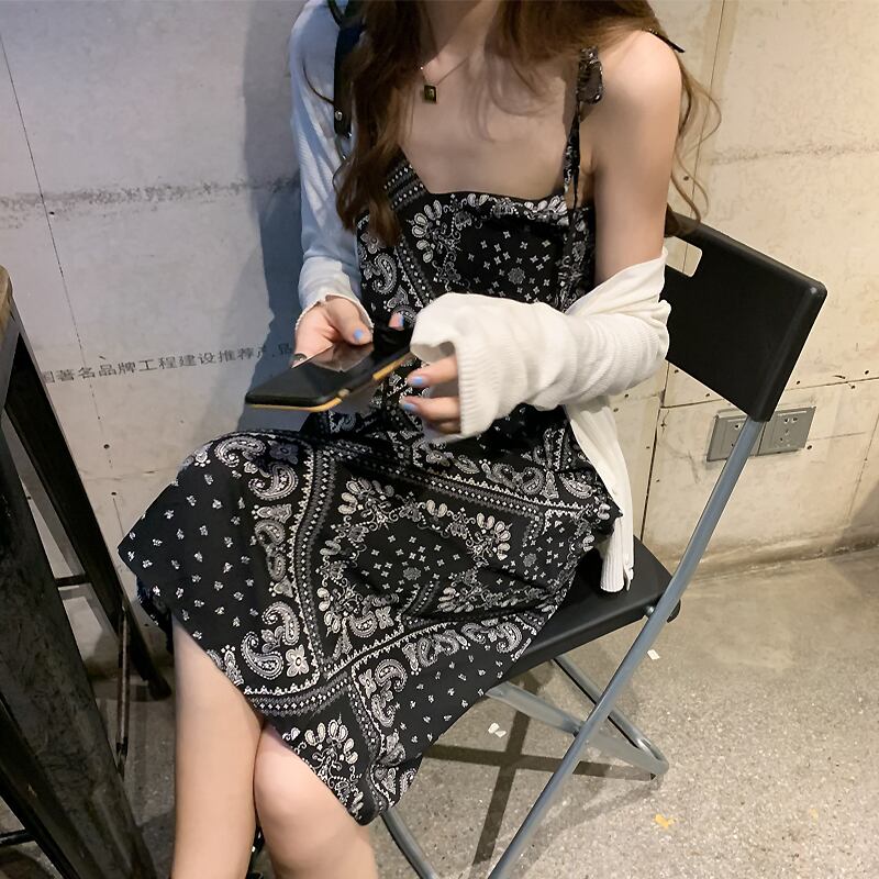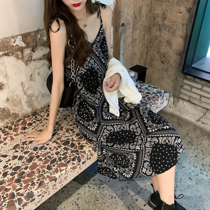 ペイズリー柄 Vネック ノースリーブ ワンピース *on553