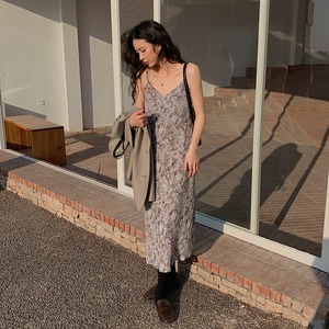 ペイント柄 とろみ Vネック ノースリーブ ワンピース *on555