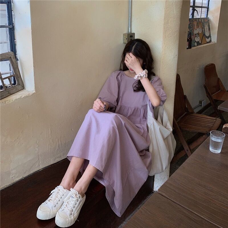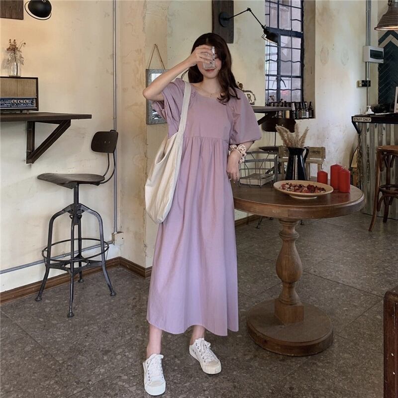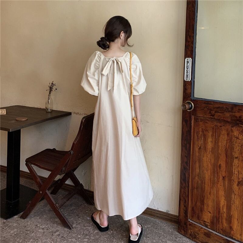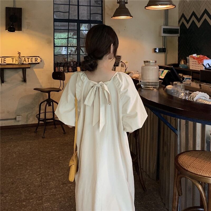 2カラー バックリボン スクエアネック 半袖 ワンピース *on560