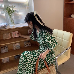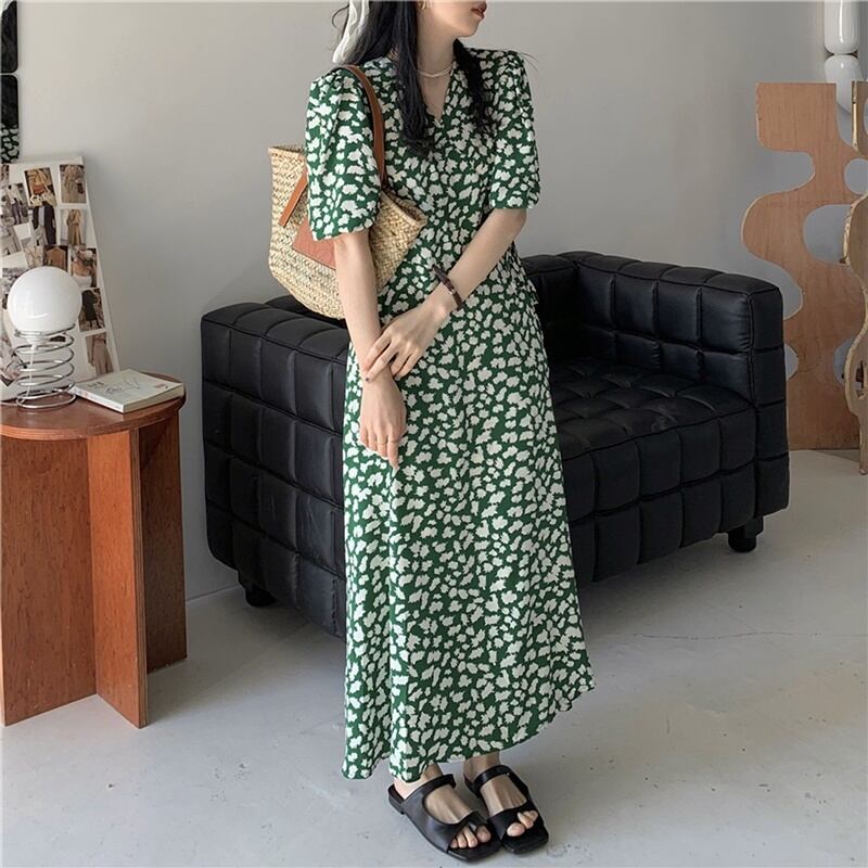 フローラル Vネック 半袖 ワンピース *on569