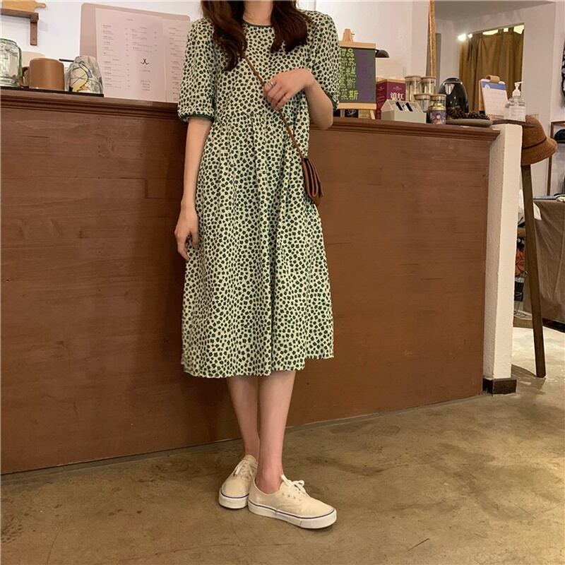 花柄の半袖ワンピースです。