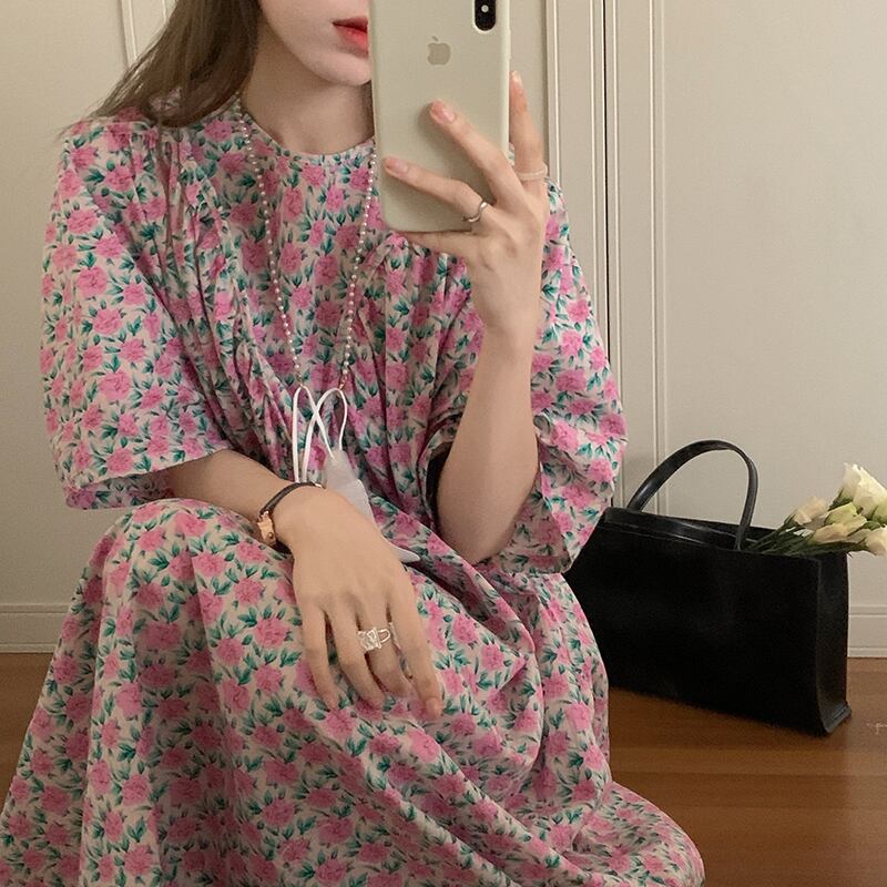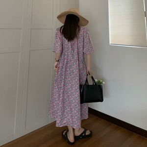 花柄 ラウンドネック 半袖 ワンピース *on571