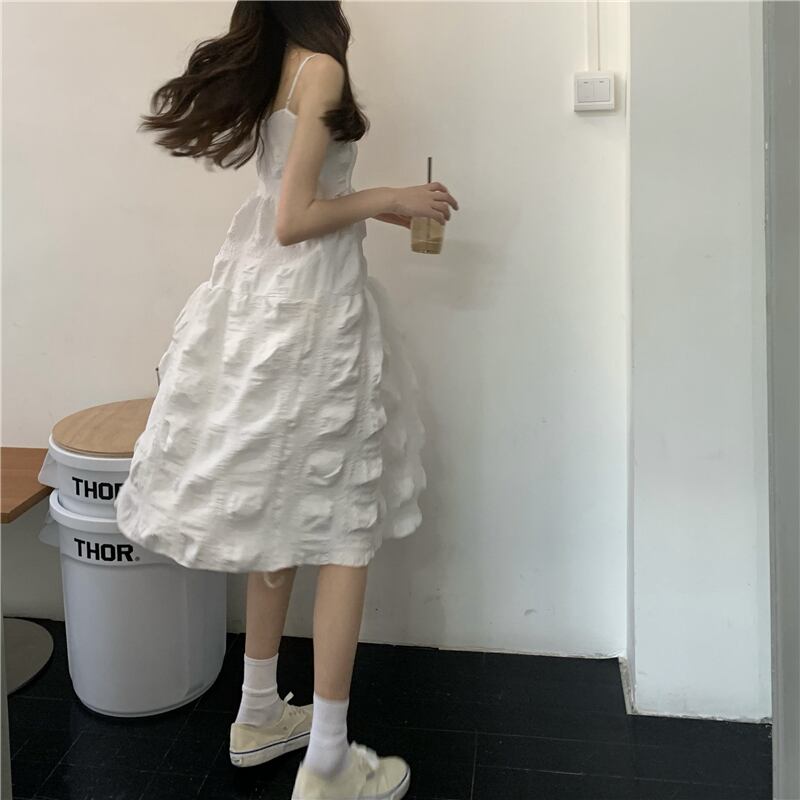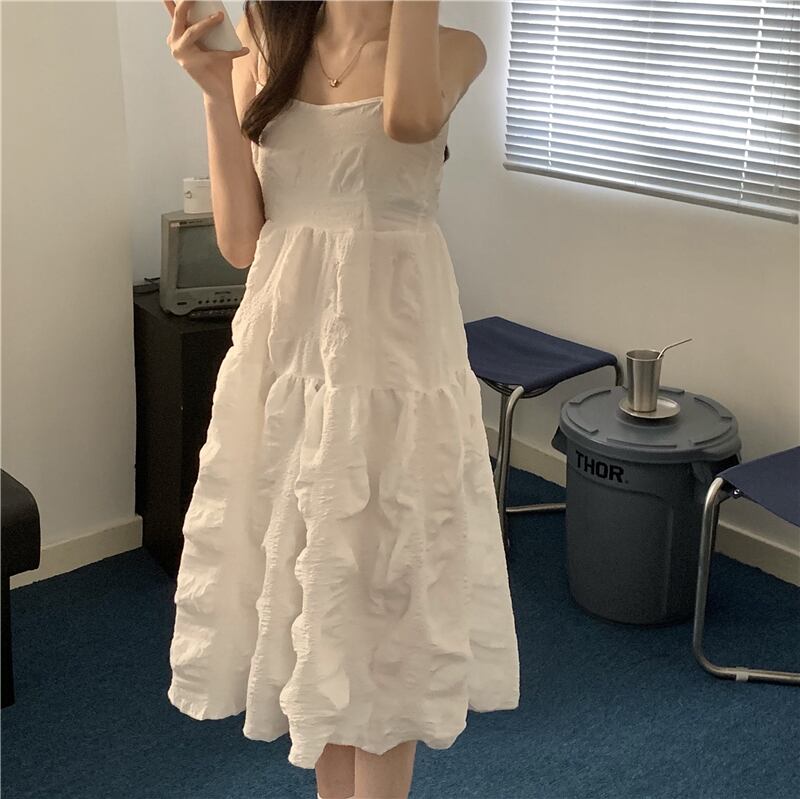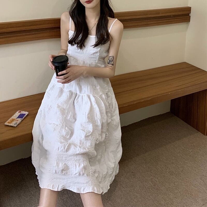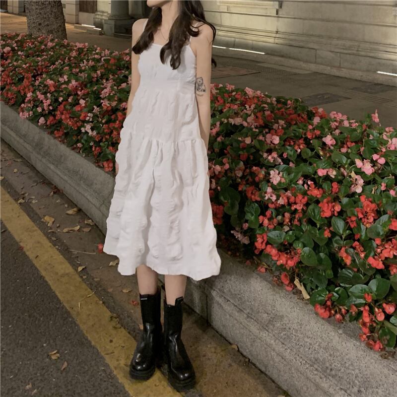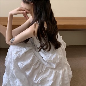 ノースリーブ ギャザー ミドル丈 ワンピース *on573