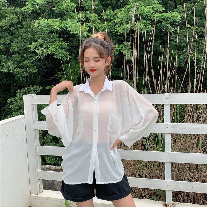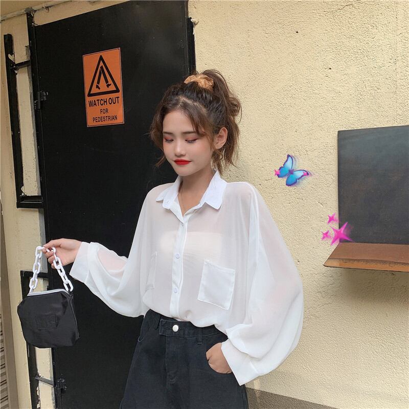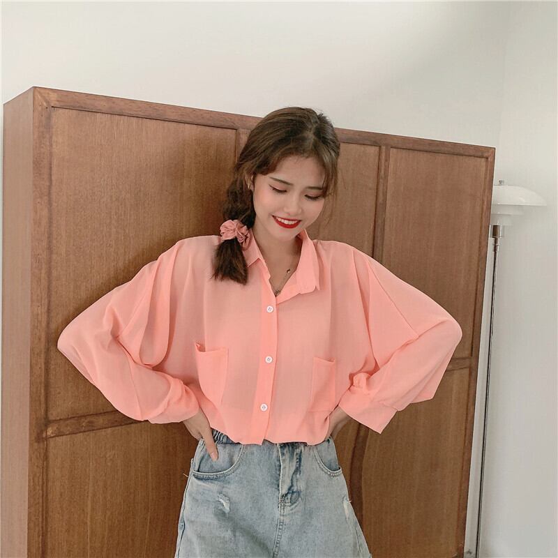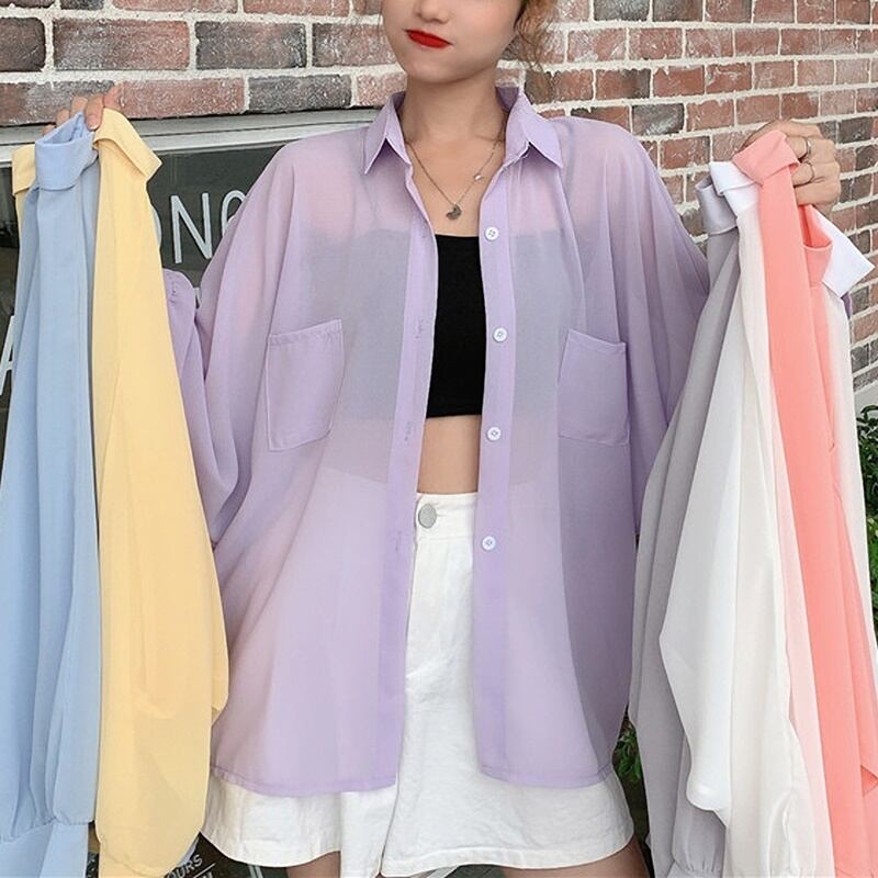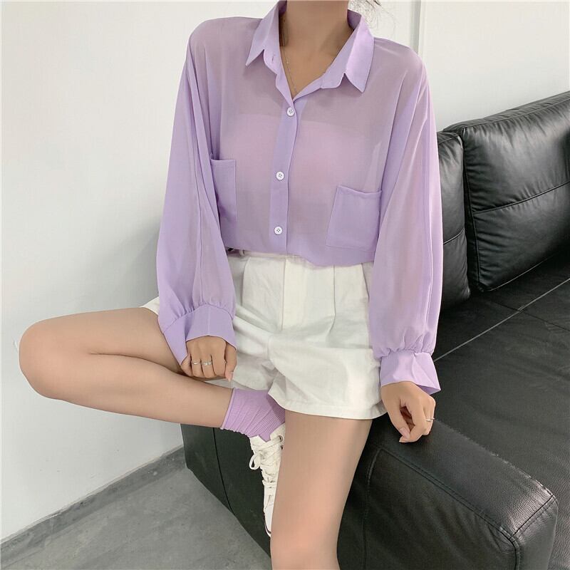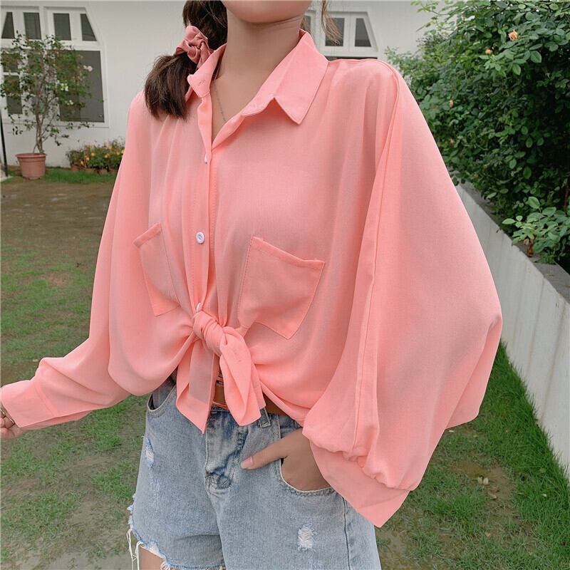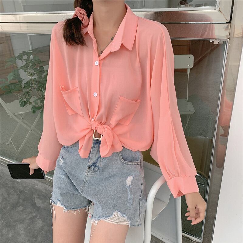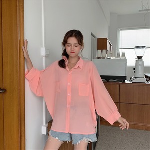 6カラー レース シアー Vネック 長袖 シャツ ブラウス *bl273