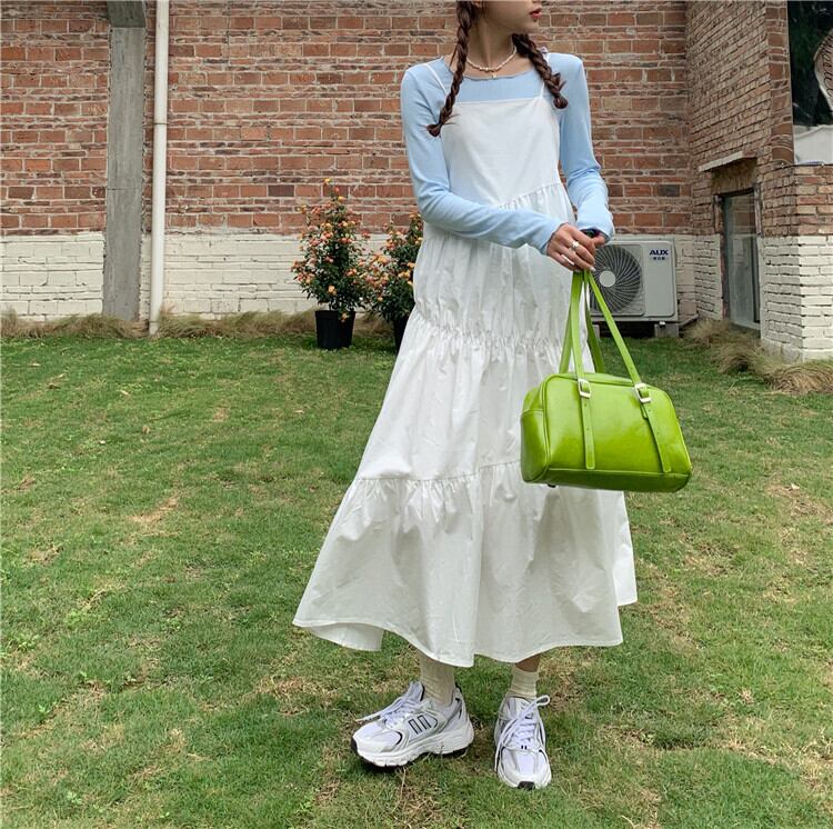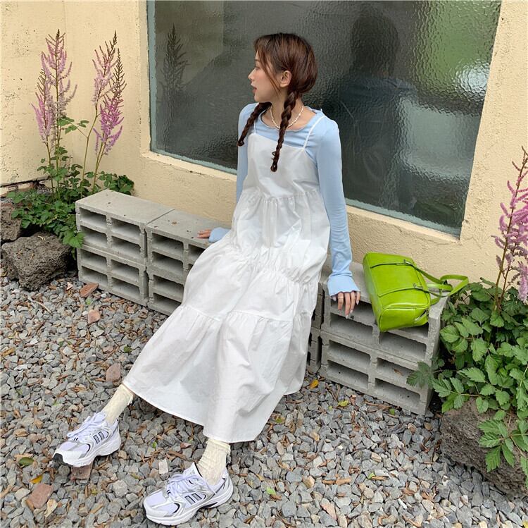 ツーピース 長袖 シャツ ノースリーブ スカート セット *set048