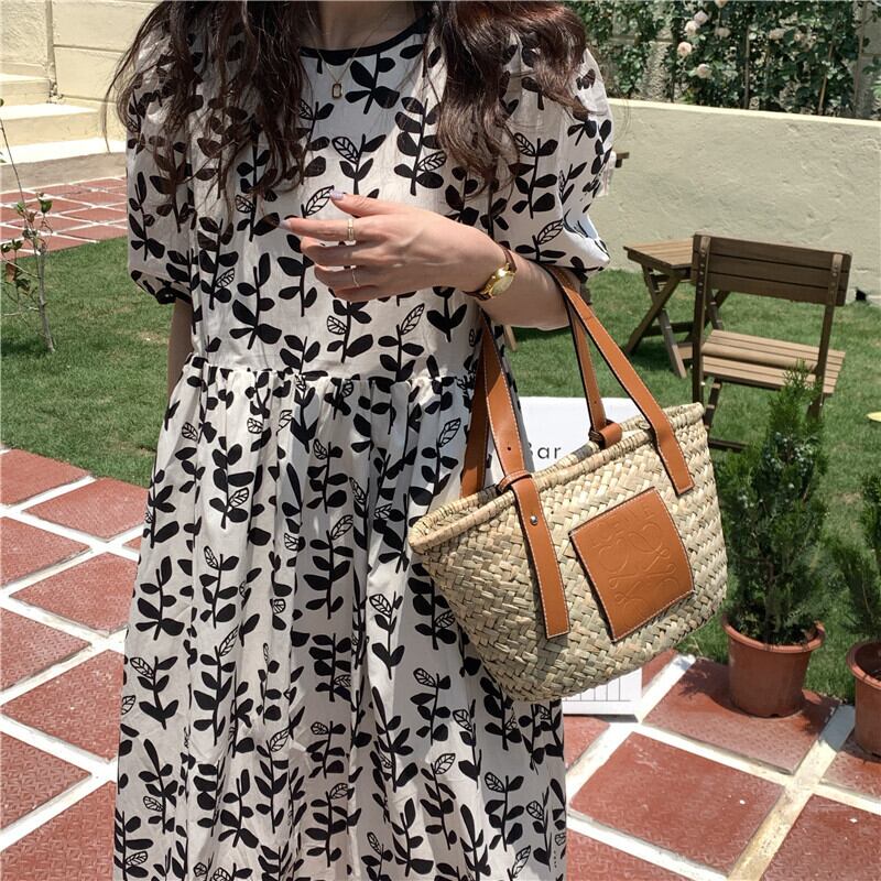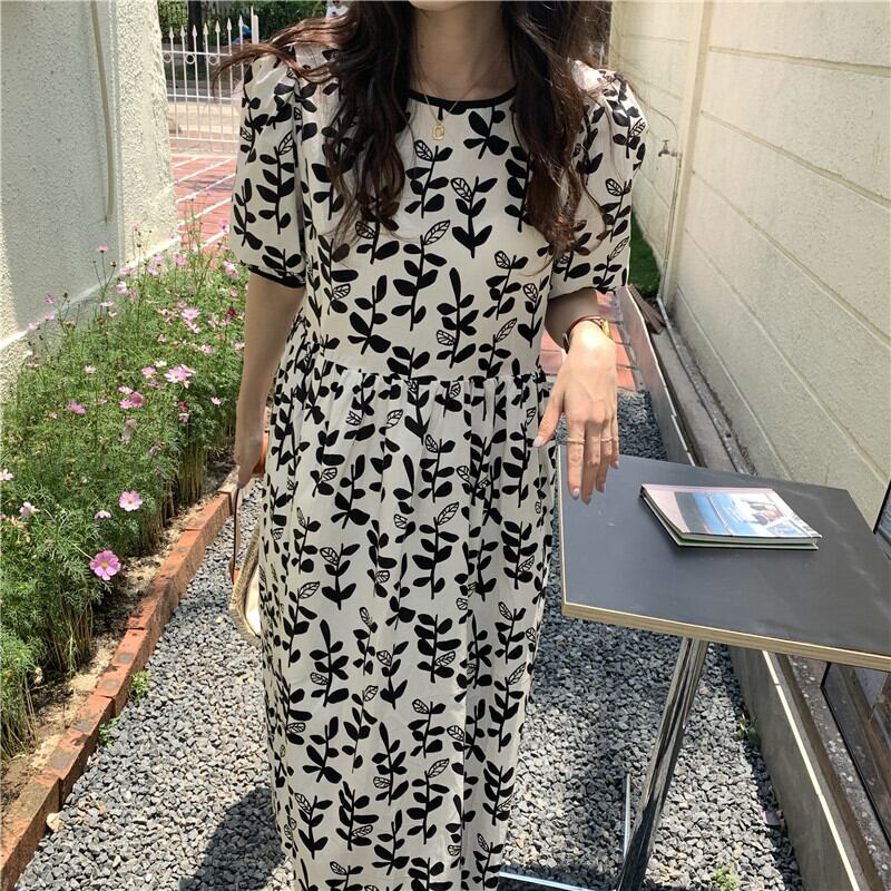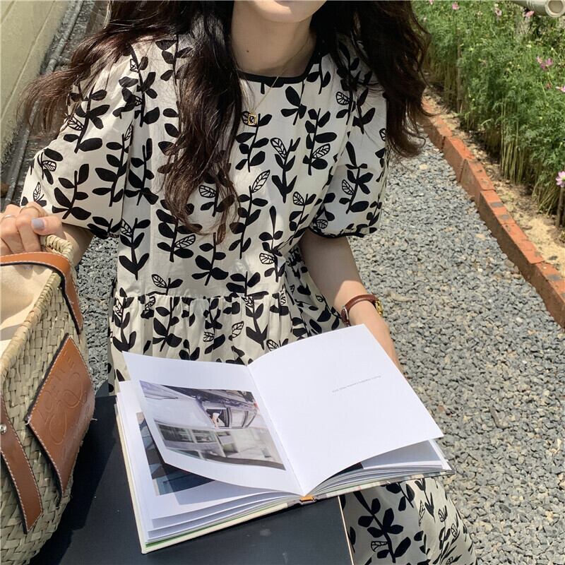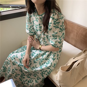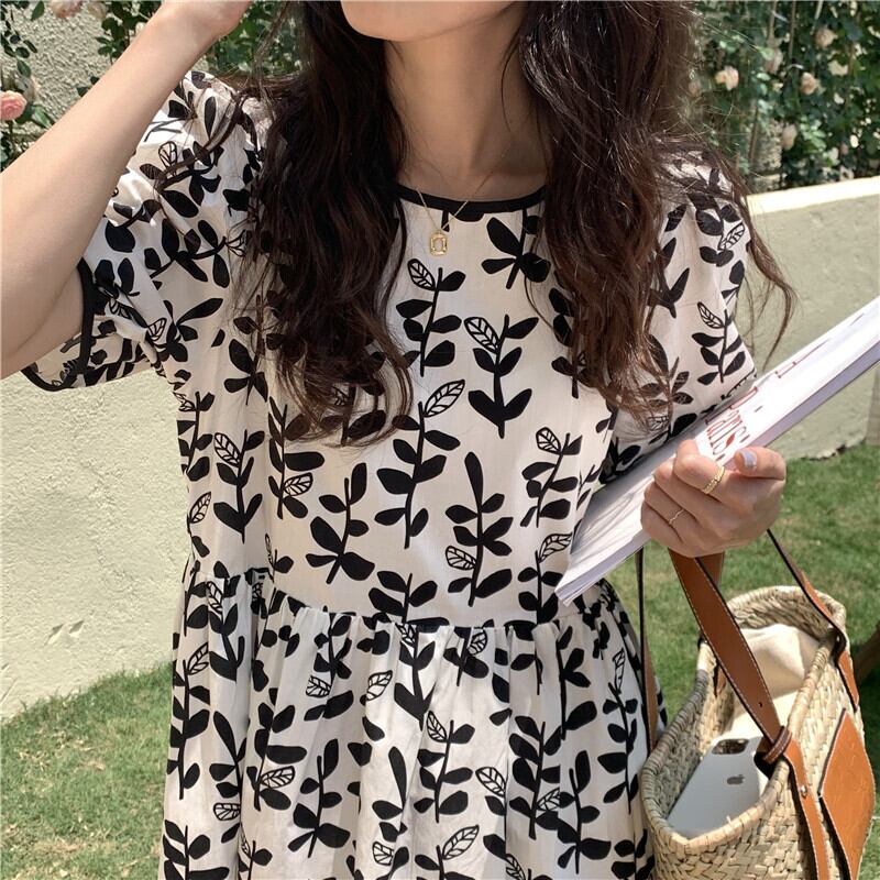 2カラー フローラル ラウンドネック 半袖 ワンピース *on577