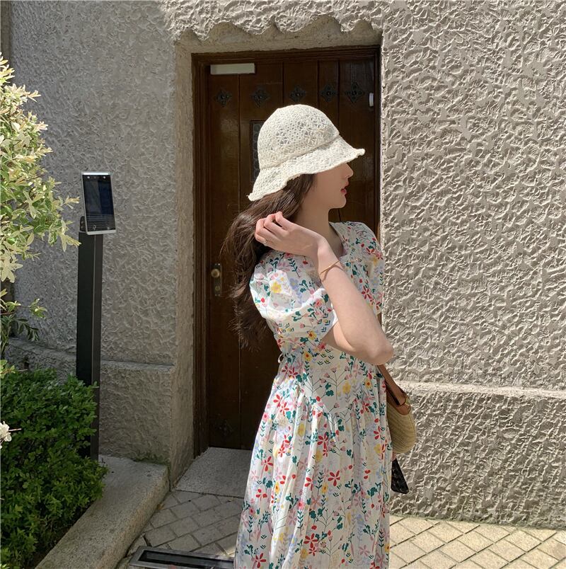 2カラー 花柄 ラウンドネック 半袖 ワンピース *on578
