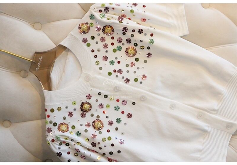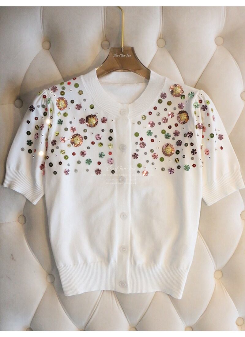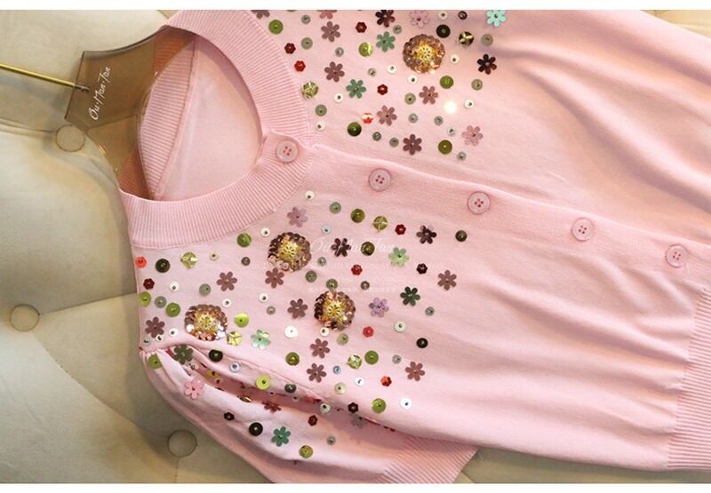 3カラー サマーニット スパンコール 半袖 カーディガン *bl275