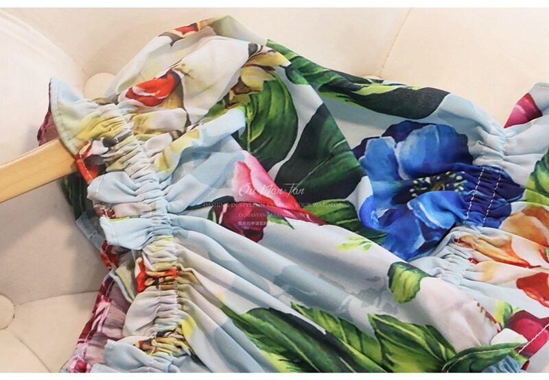 花柄 フリル スクエアネック ドレス ワンピース *on579