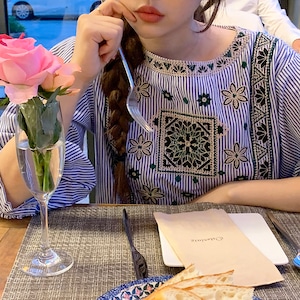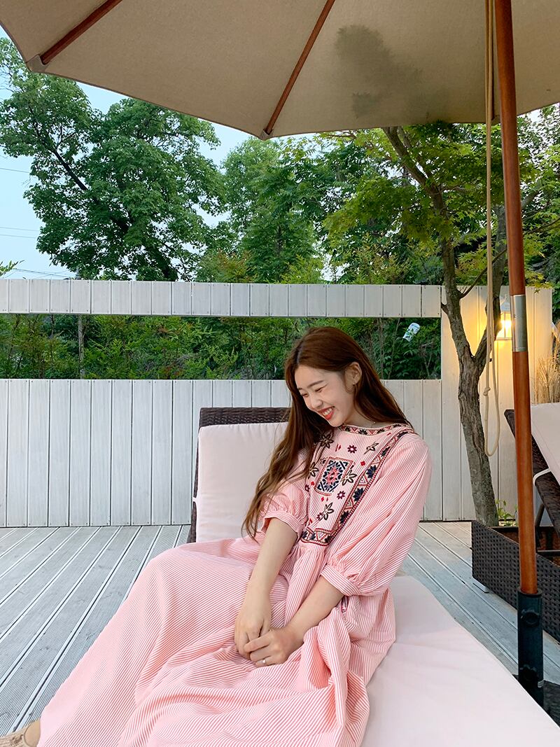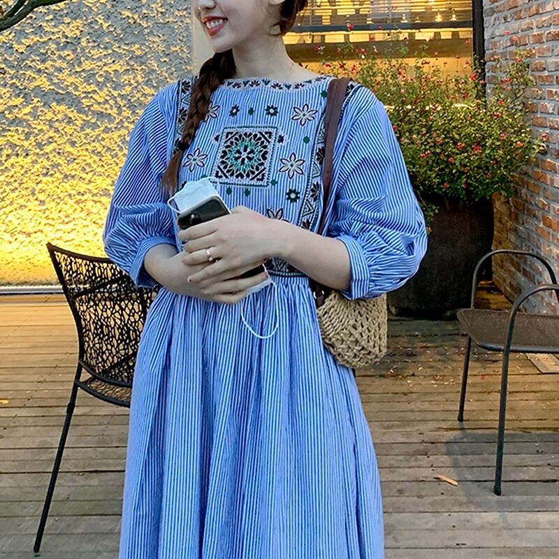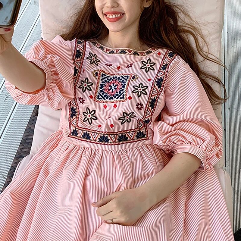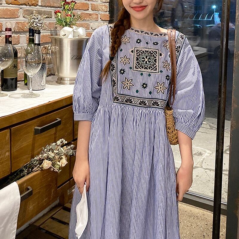 2カラー エスニック柄 ストライプ 半袖 ワンピース 大きいサイズ *on581