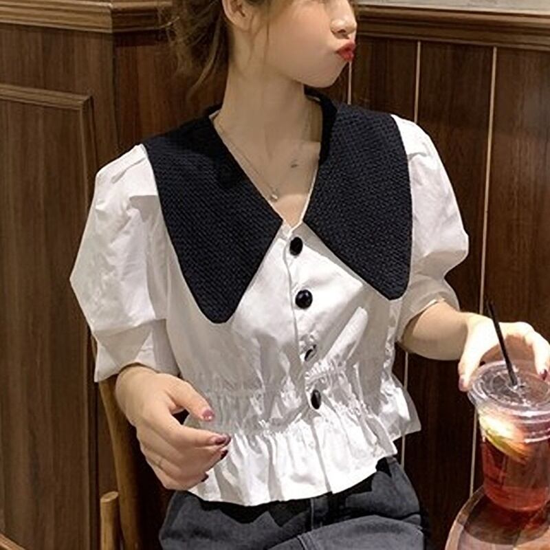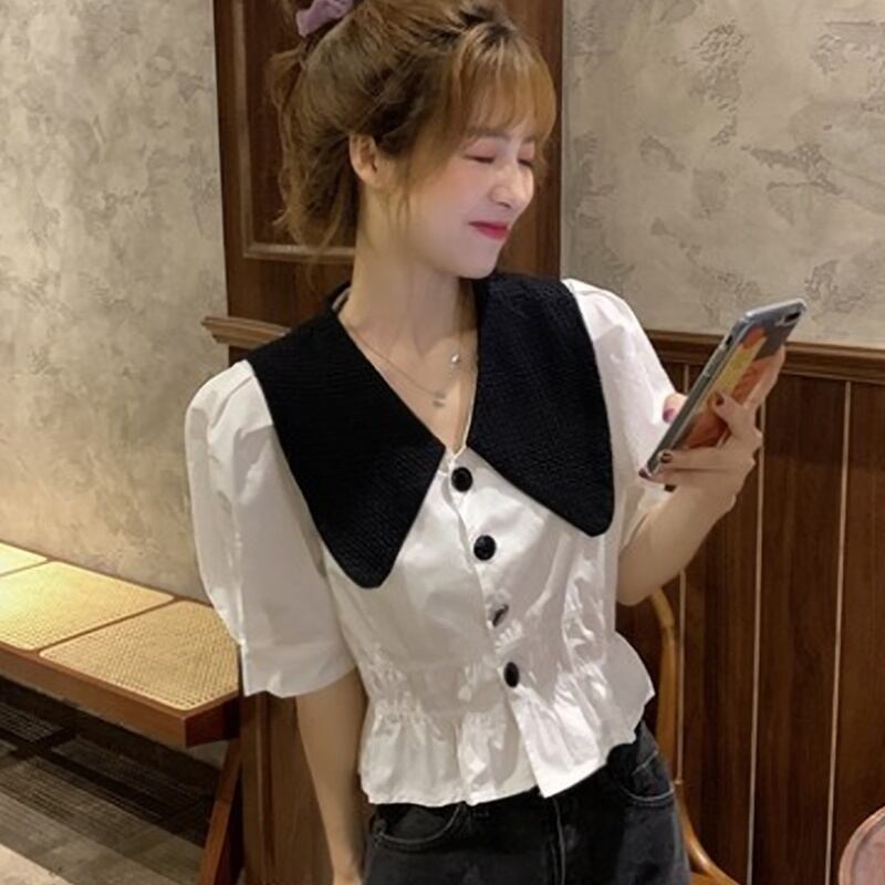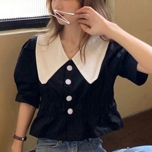 2カラー ギャザー Vネック 半袖 シャツ ブラウス *bl279