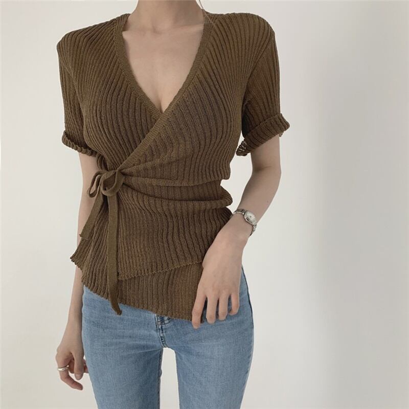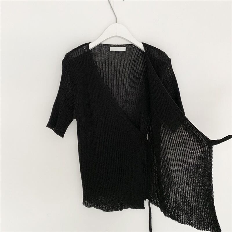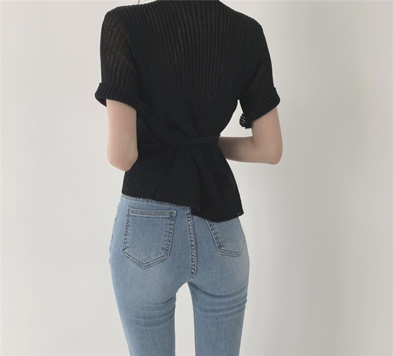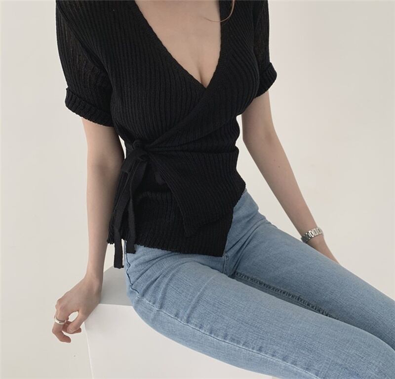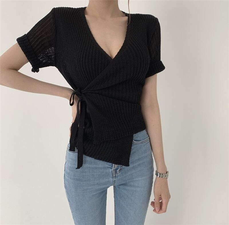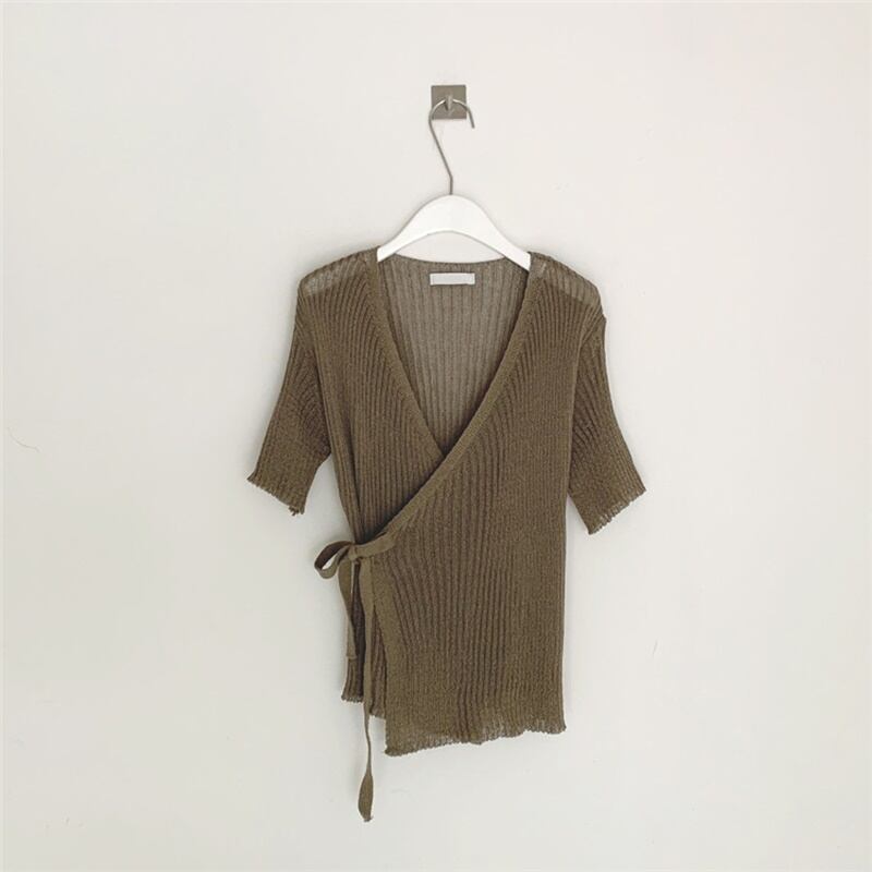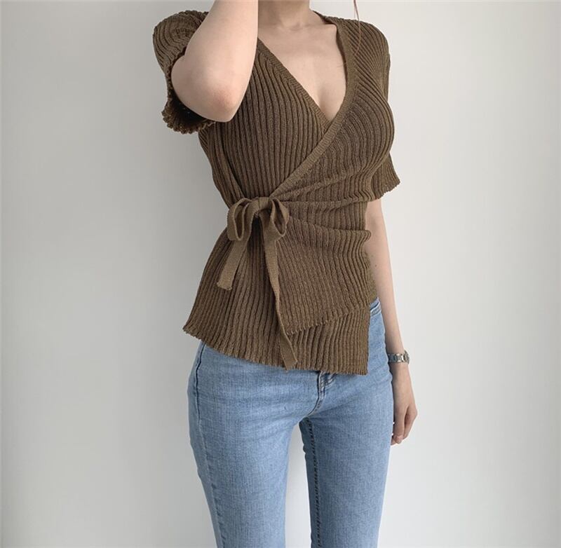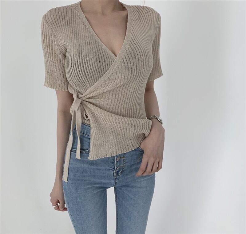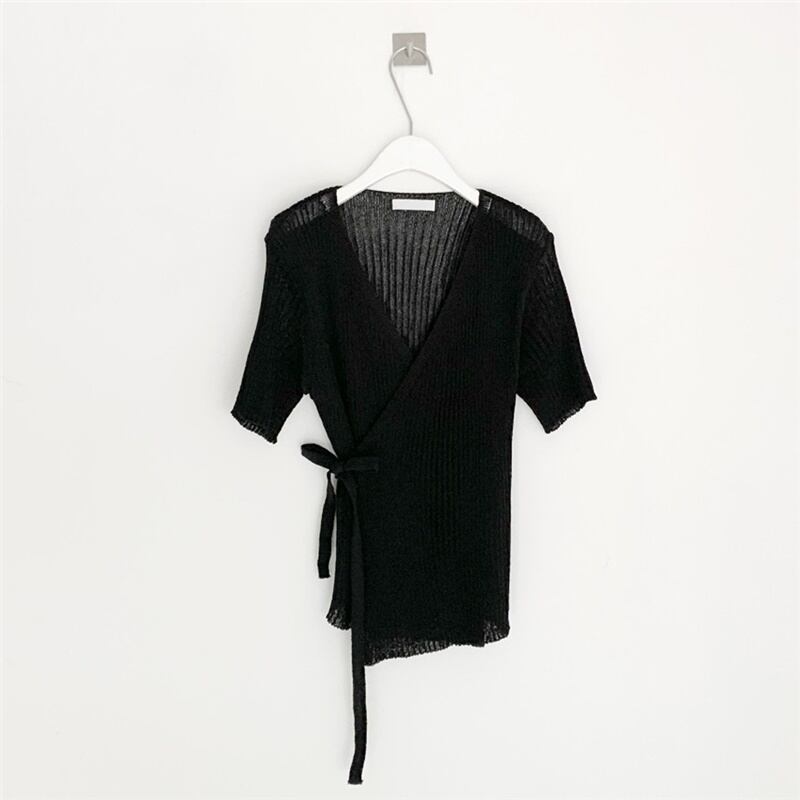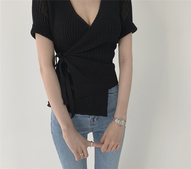 3カラー カシュクール リボン 半袖 シャツ ニット *bl285