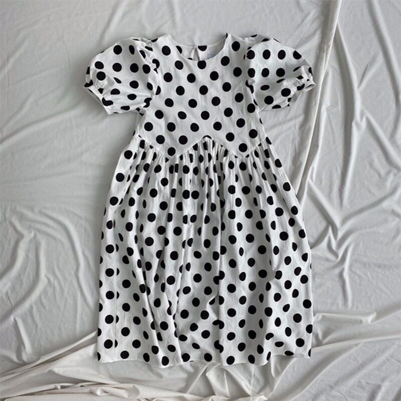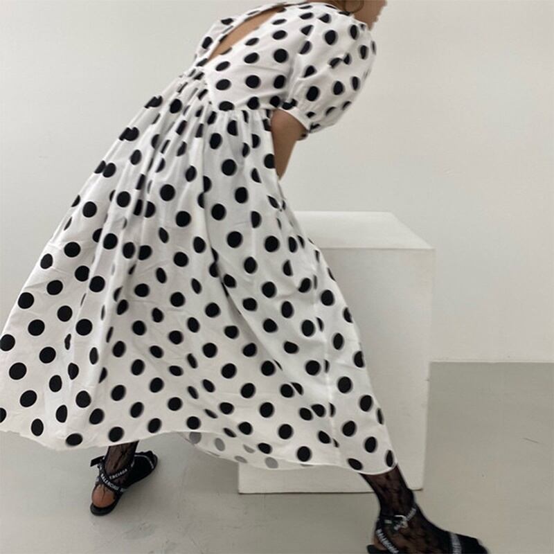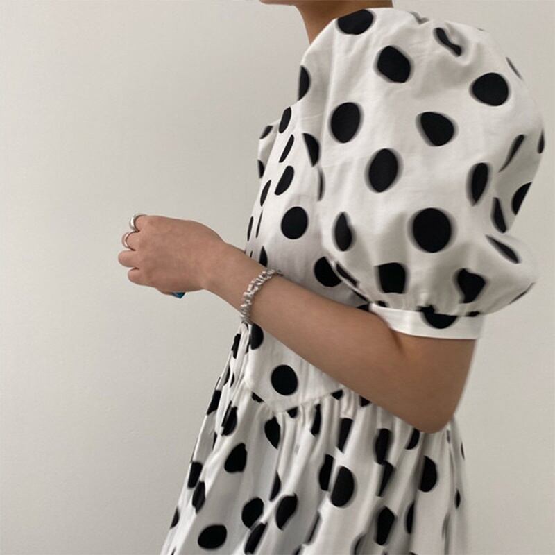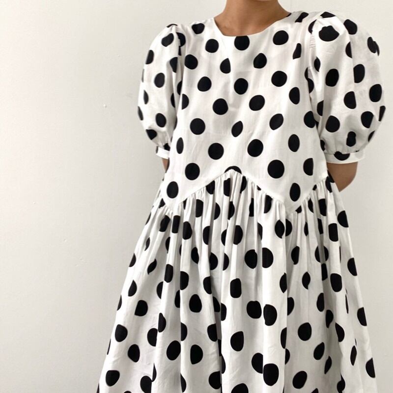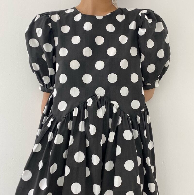 2カラー 水玉柄 パフスリーブ バックオープン 半袖 ワンピース *on604