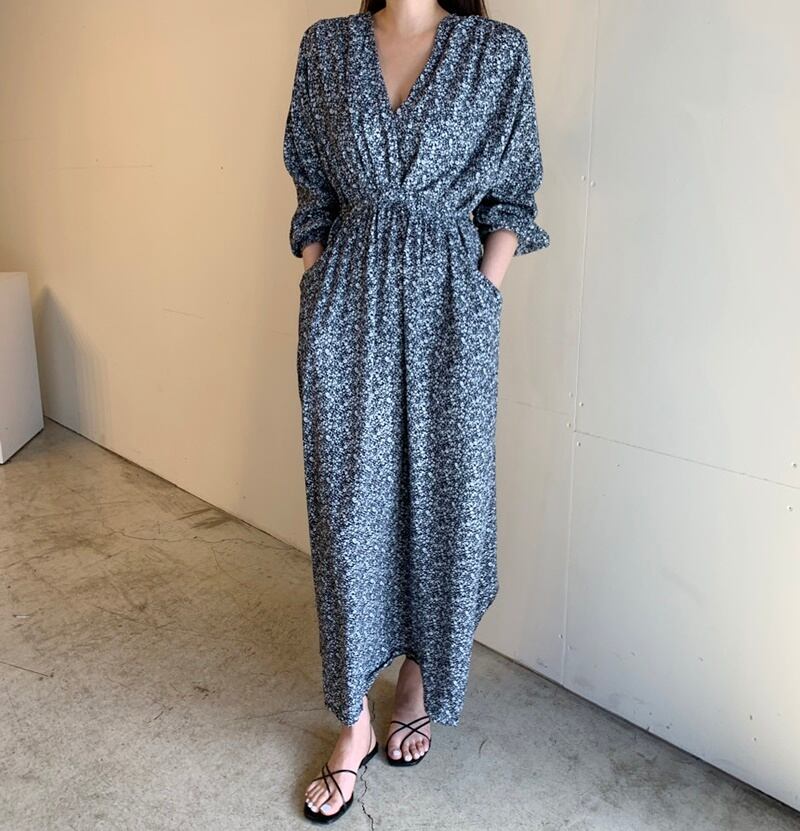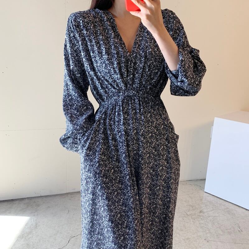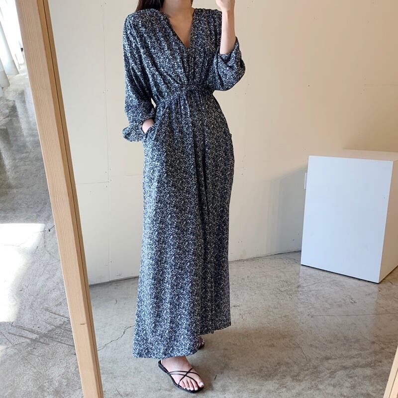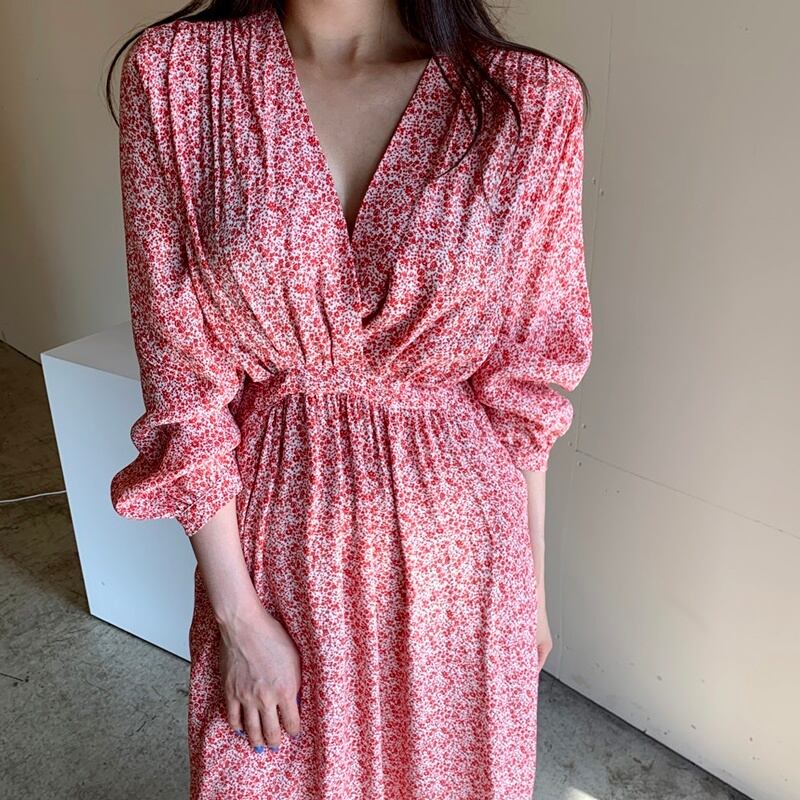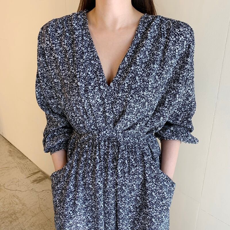 3カラー 花柄 Vネック カシュクール 長袖 ワンピース *on605