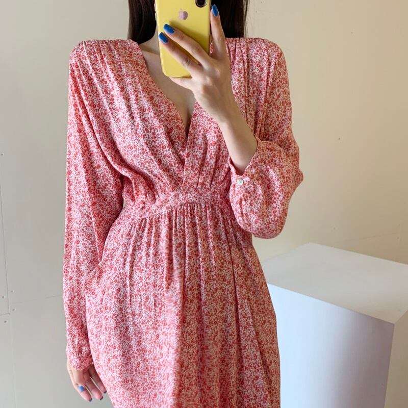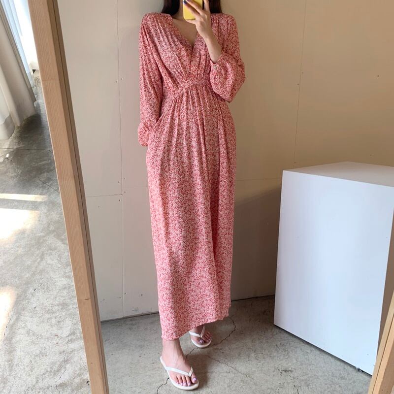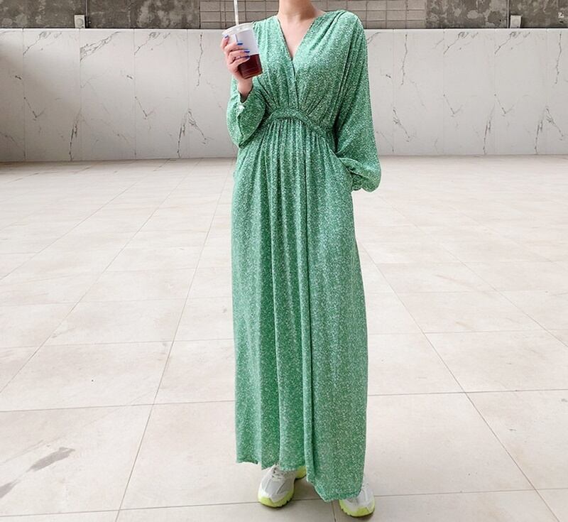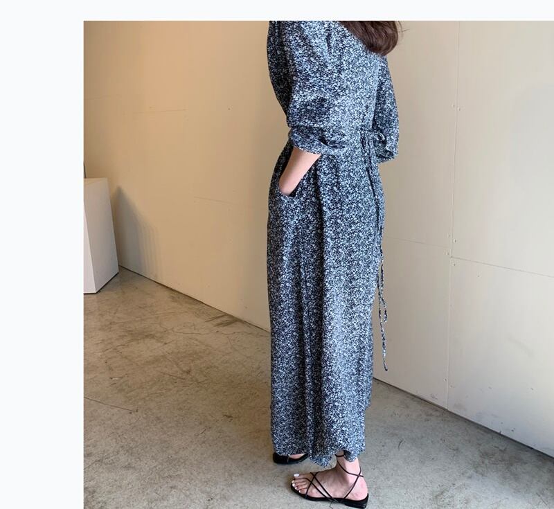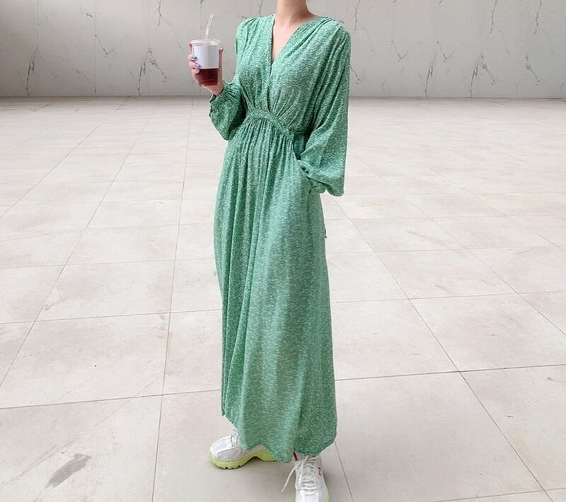 3カラー 花柄 Vネック カシュクール 長袖 ワンピース *on605