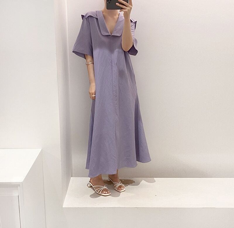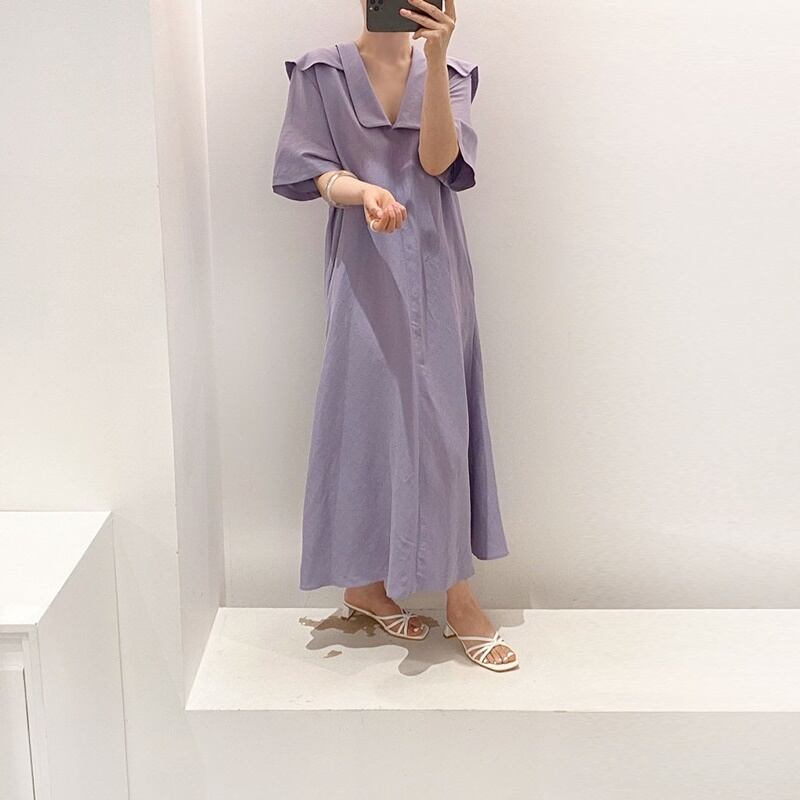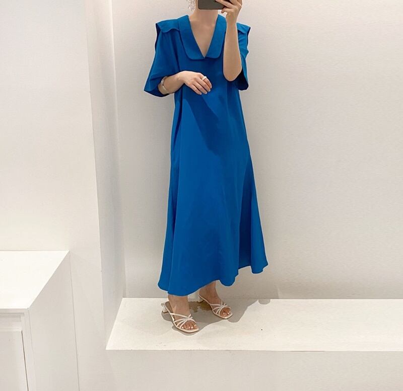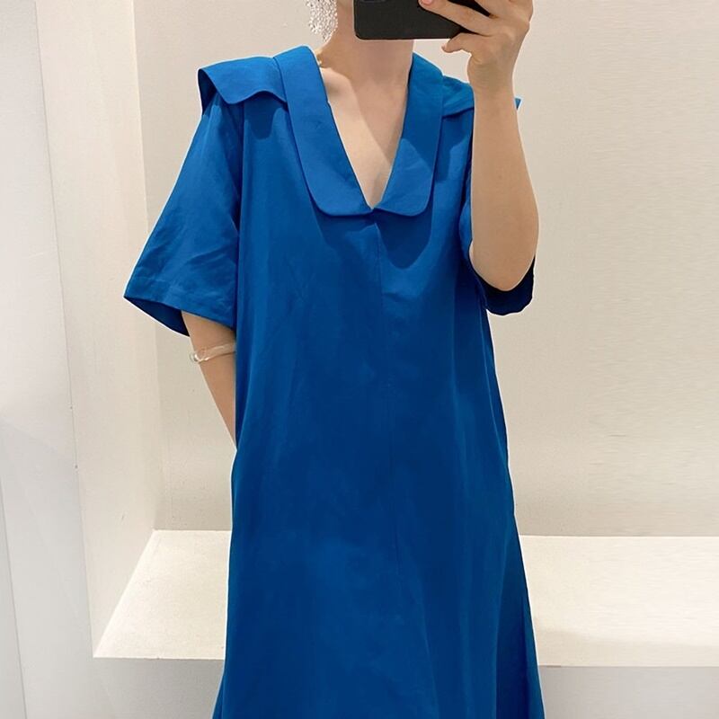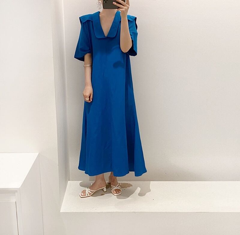 2カラー シンプル Vネック 襟付き 半袖 ワンピース *on598