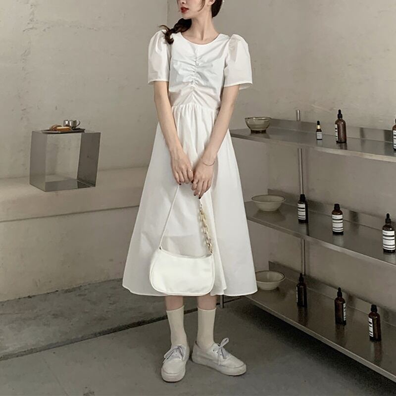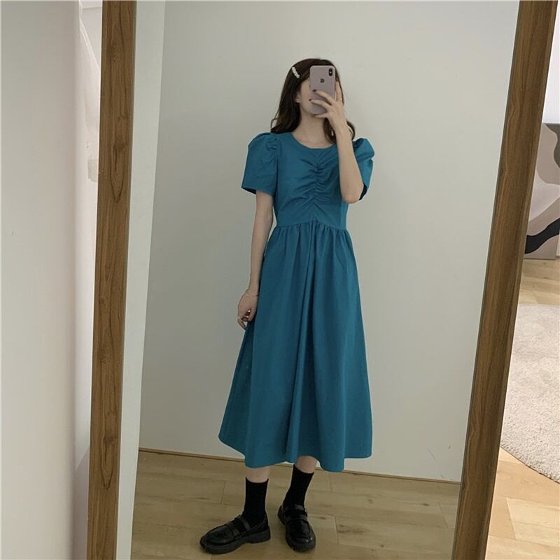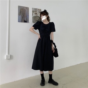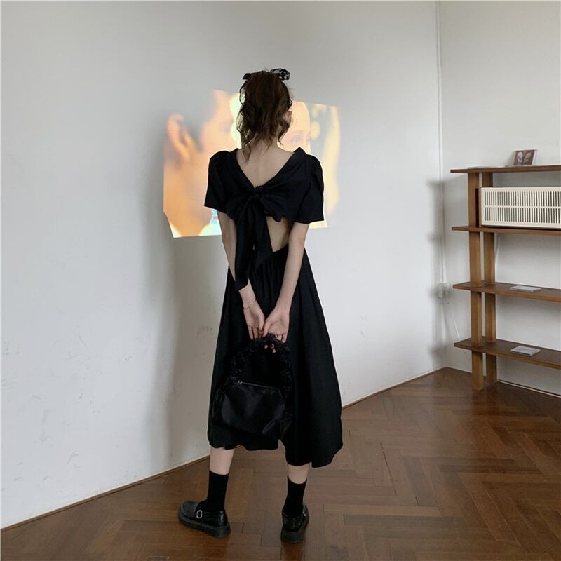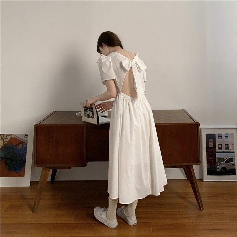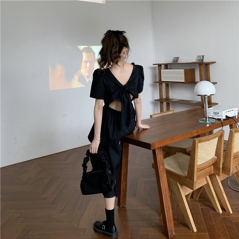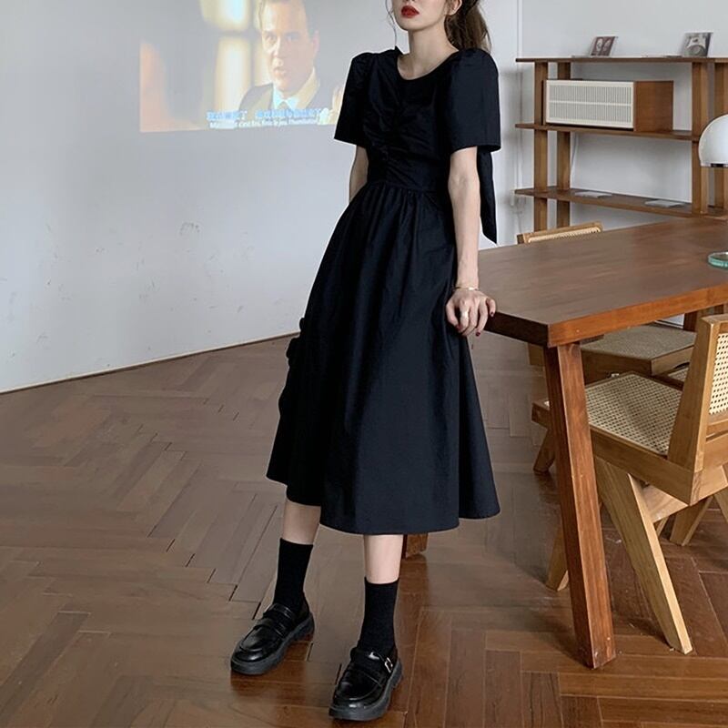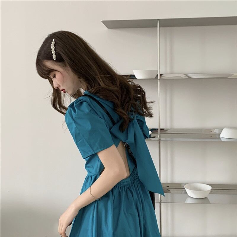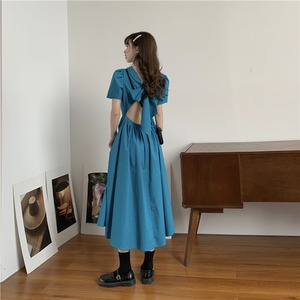 3カラー バックリボン ラウンドネック 半袖 ワンピース *on607