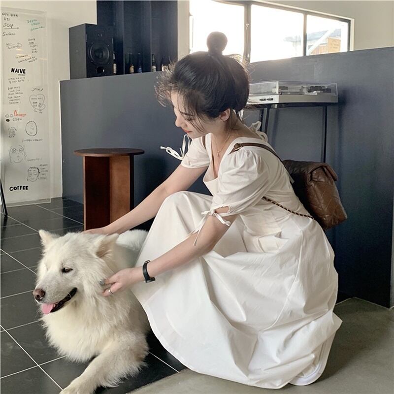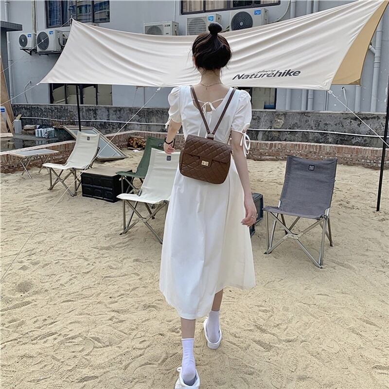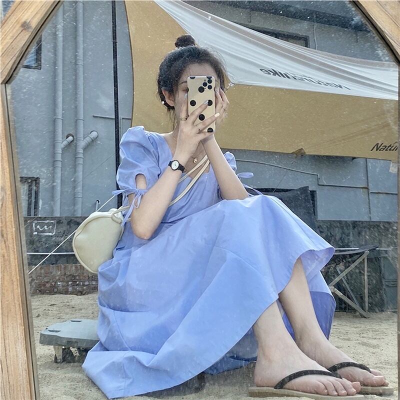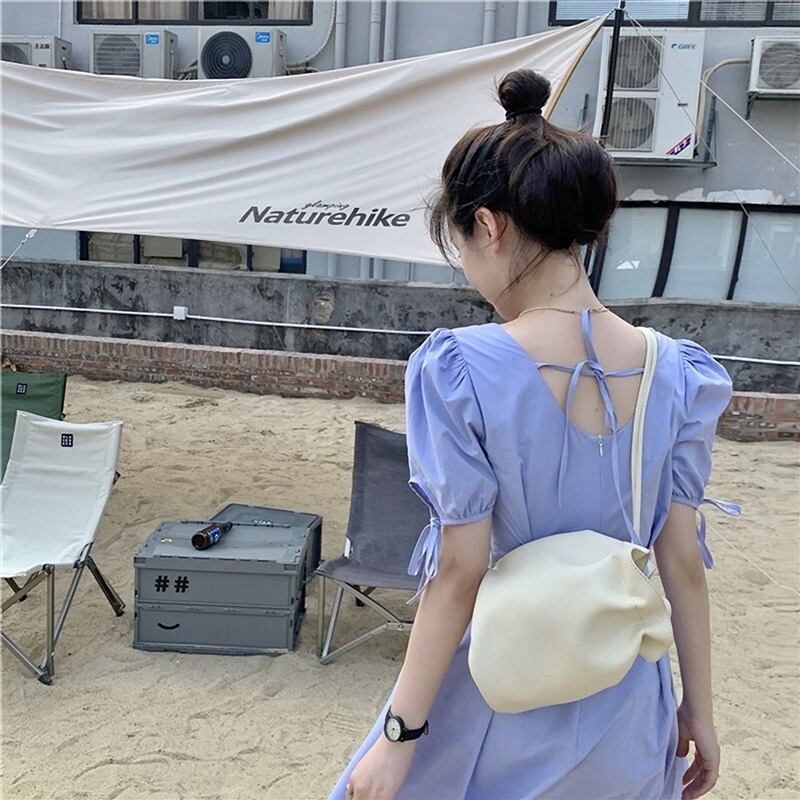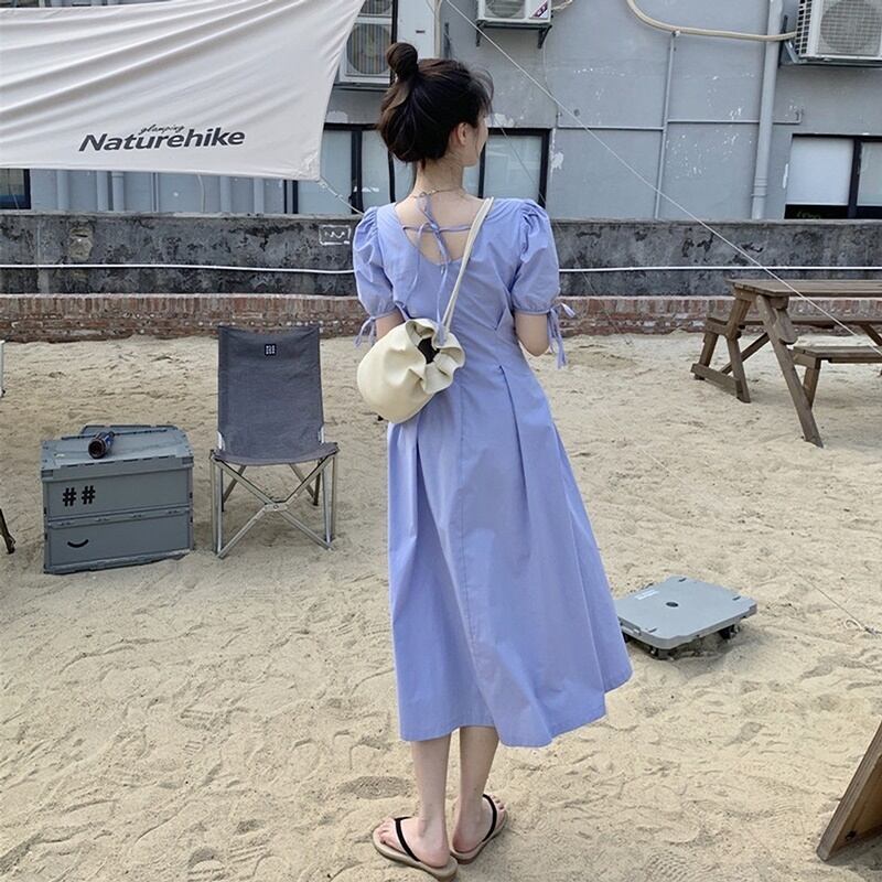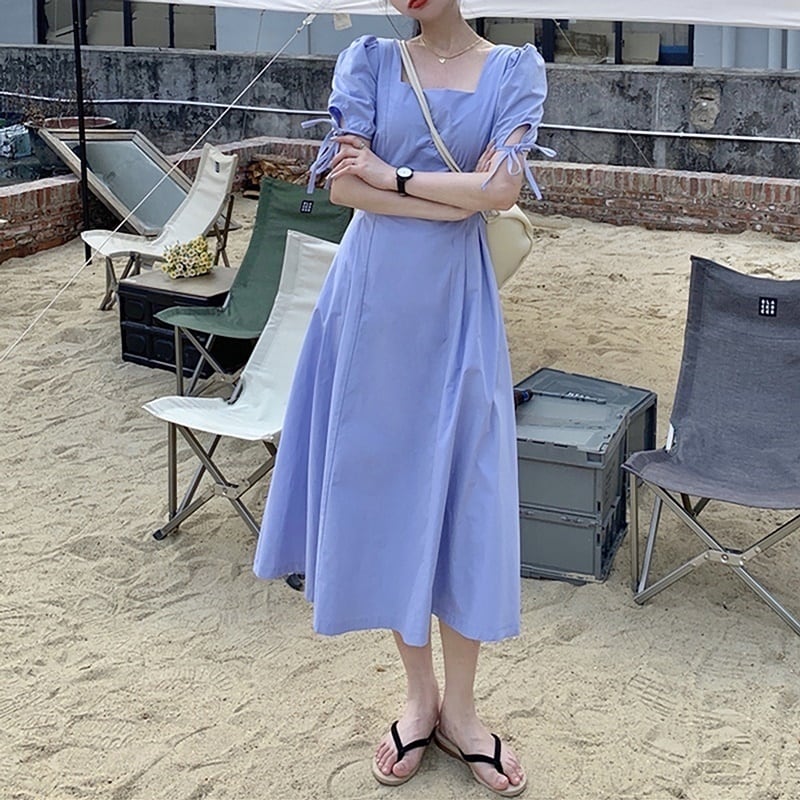 2カラー バックリボン スクエアネック 半袖 ワンピース *on608