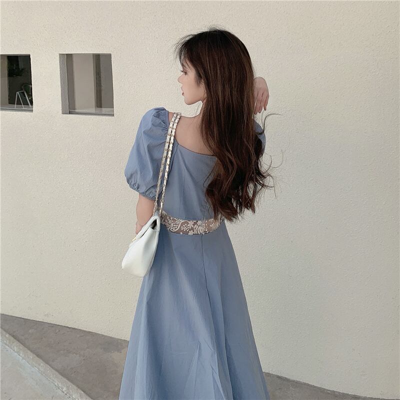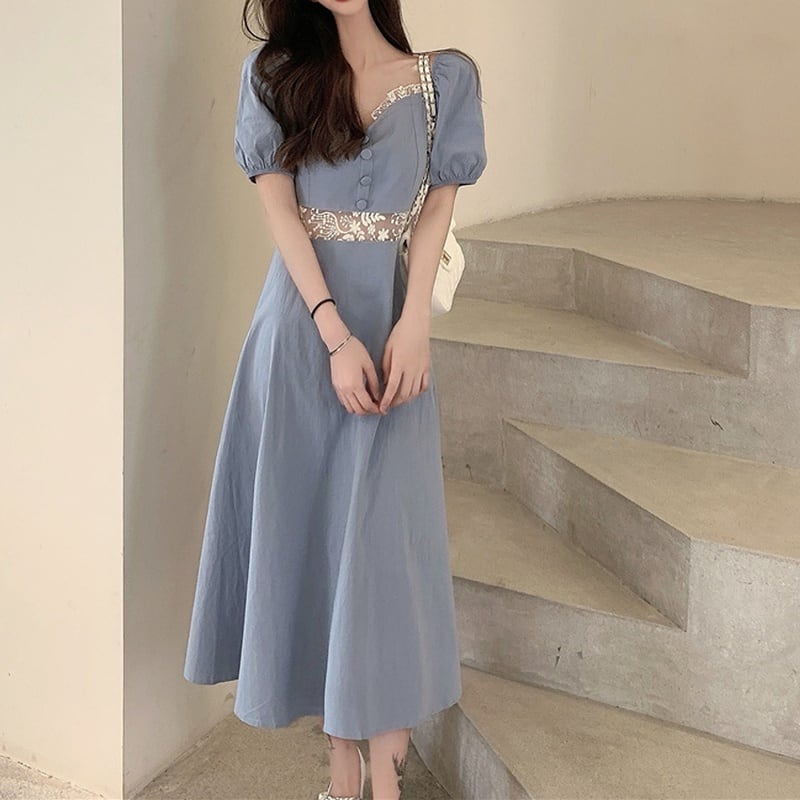 シースルー レース パフスリーブ 半袖 ワンピース *on609