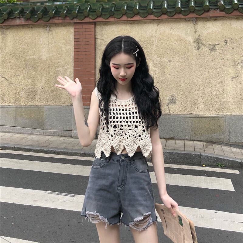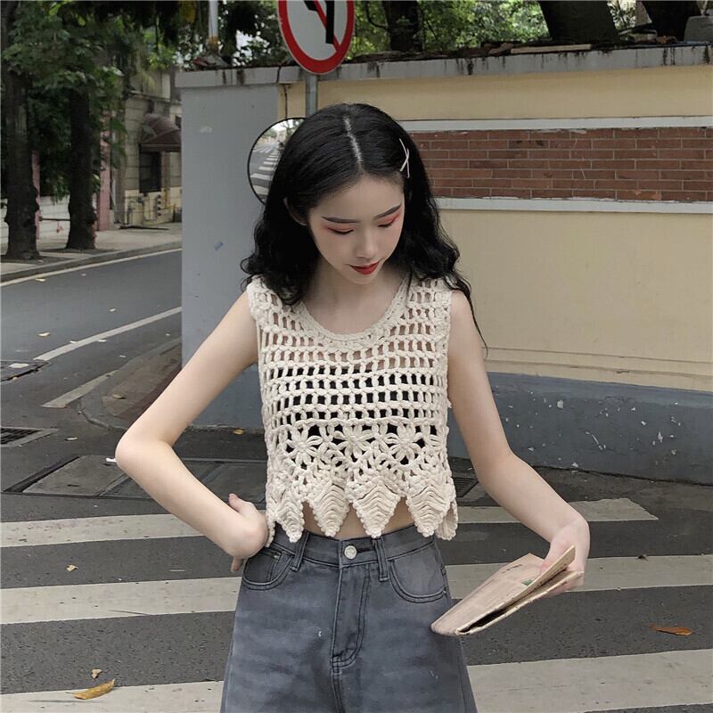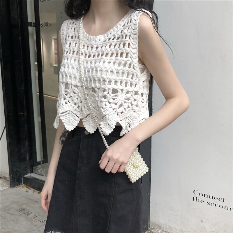 2カラー ノースリーブ シースルー 編み込み トップス セット *set049