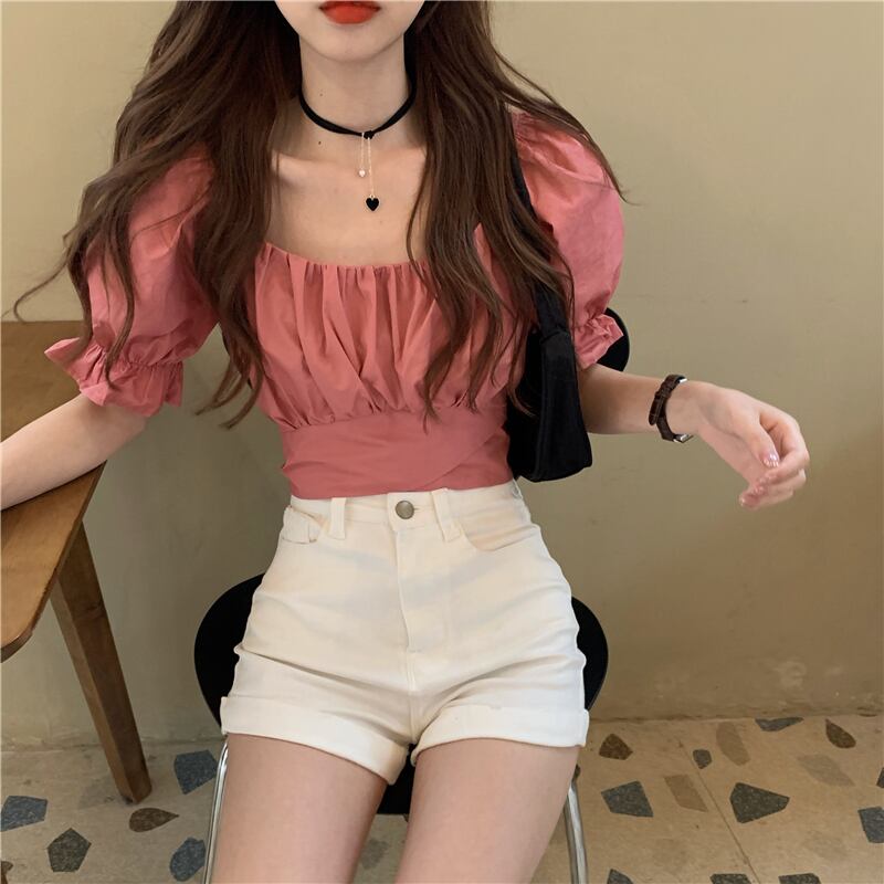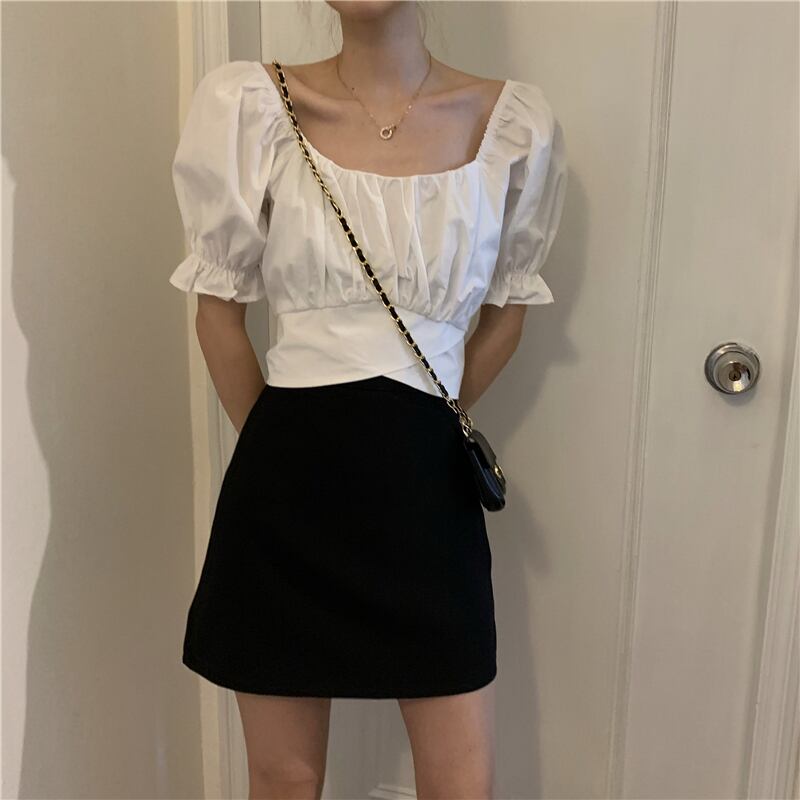 スクエアネックの半袖ブラウスです。