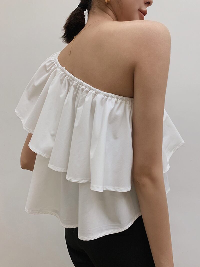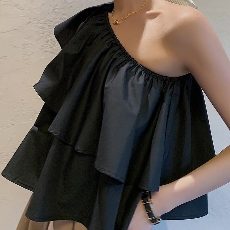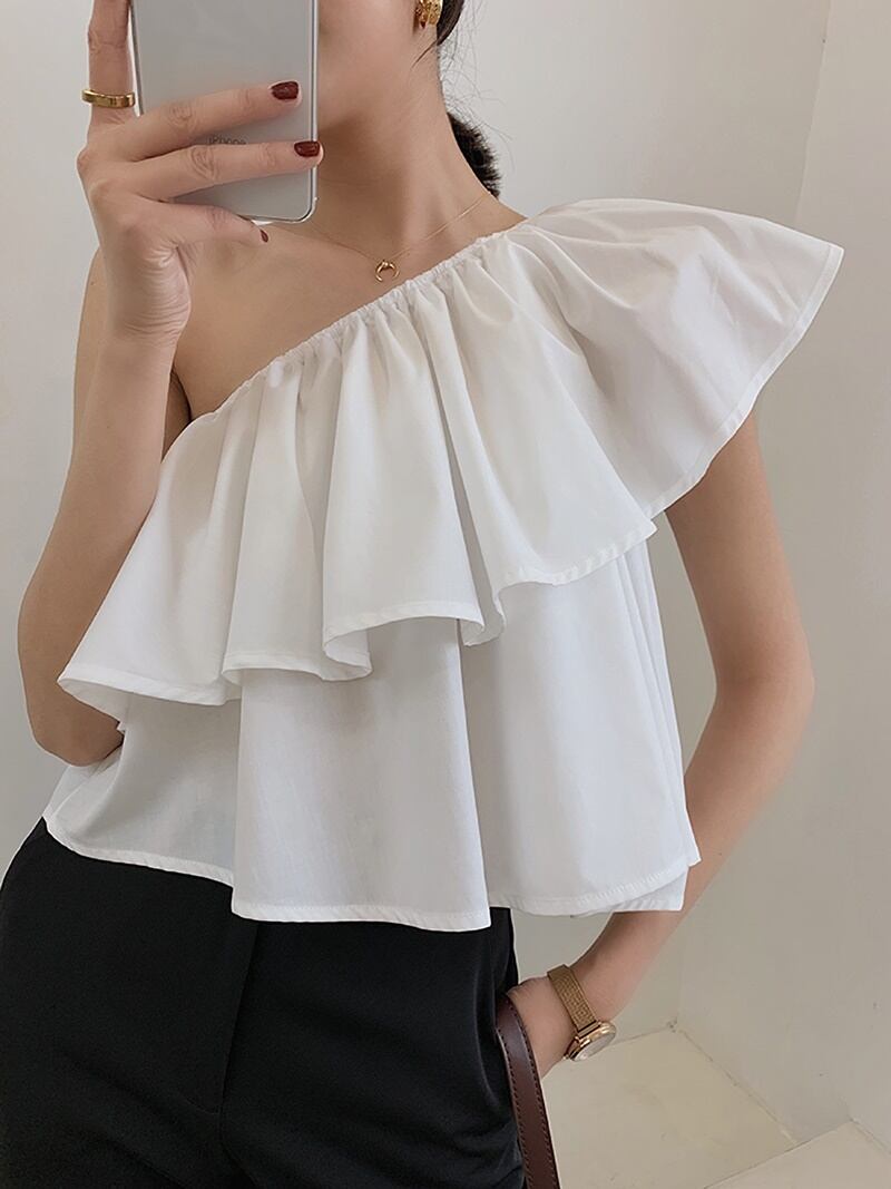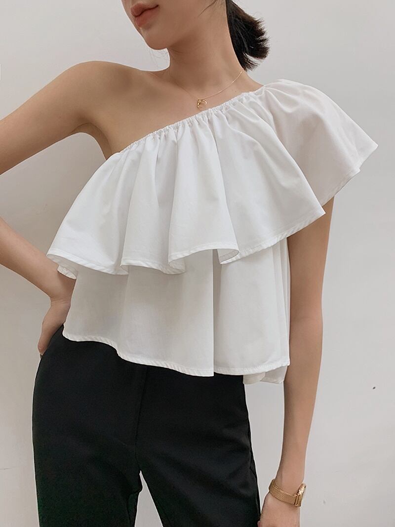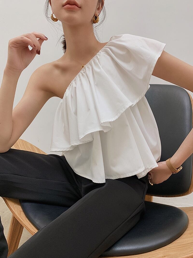 2カラー ワンショルダー フリル シャツ ブラウス *bl291