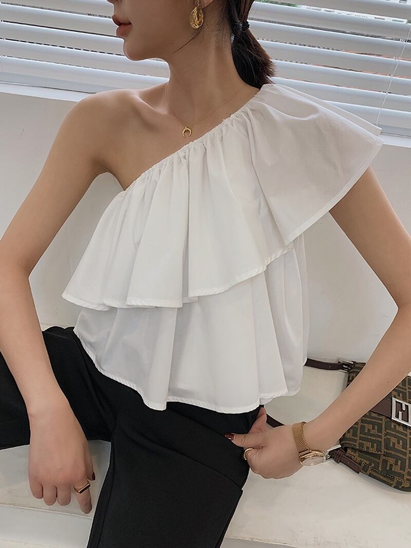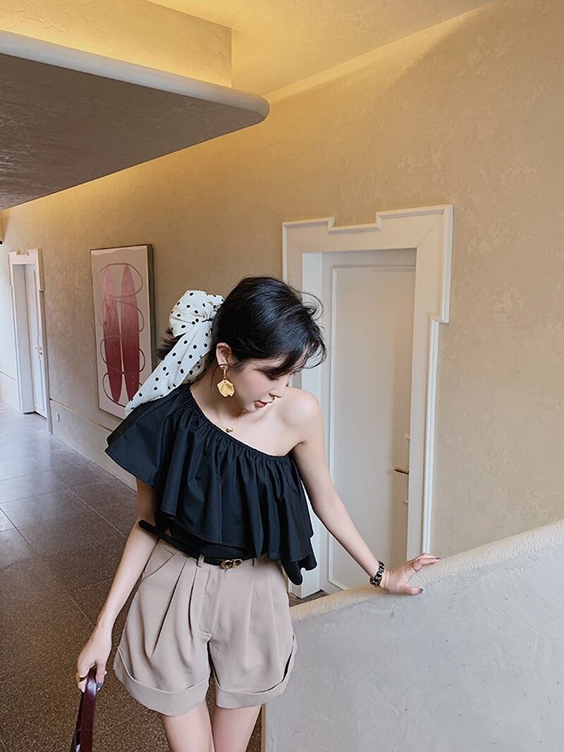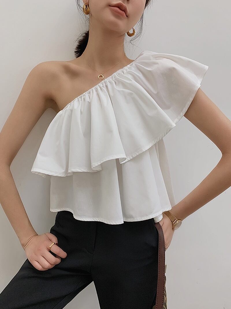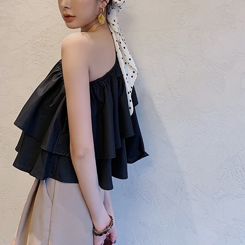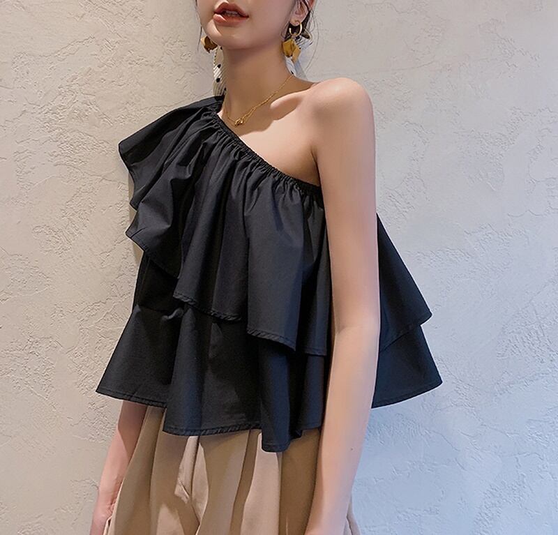 2カラー ワンショルダー フリル シャツ ブラウス *bl291