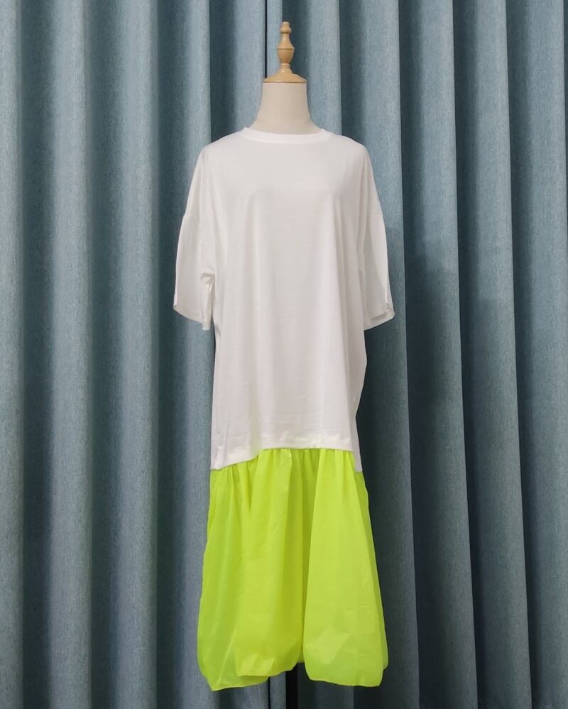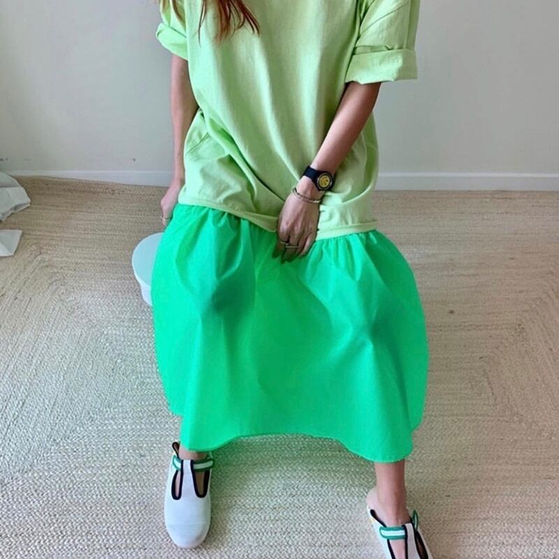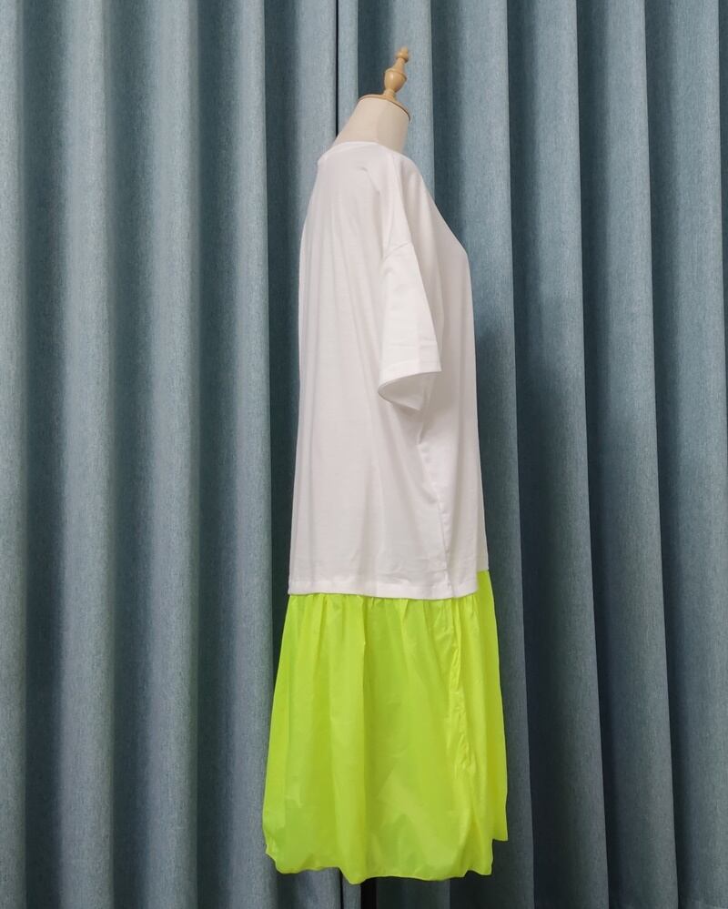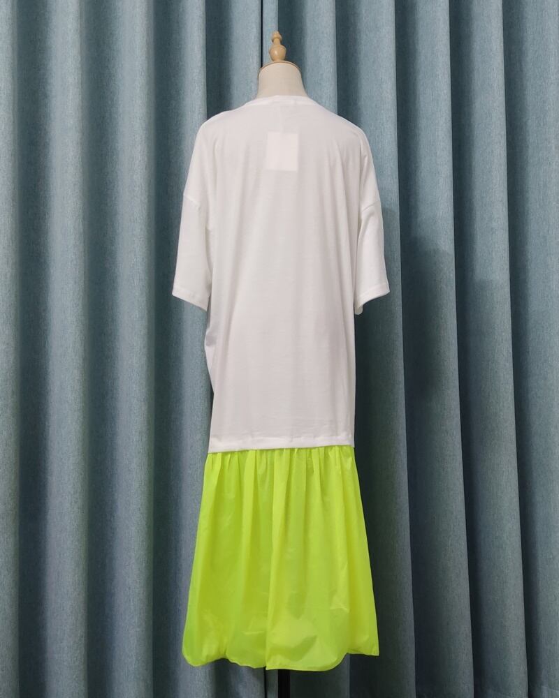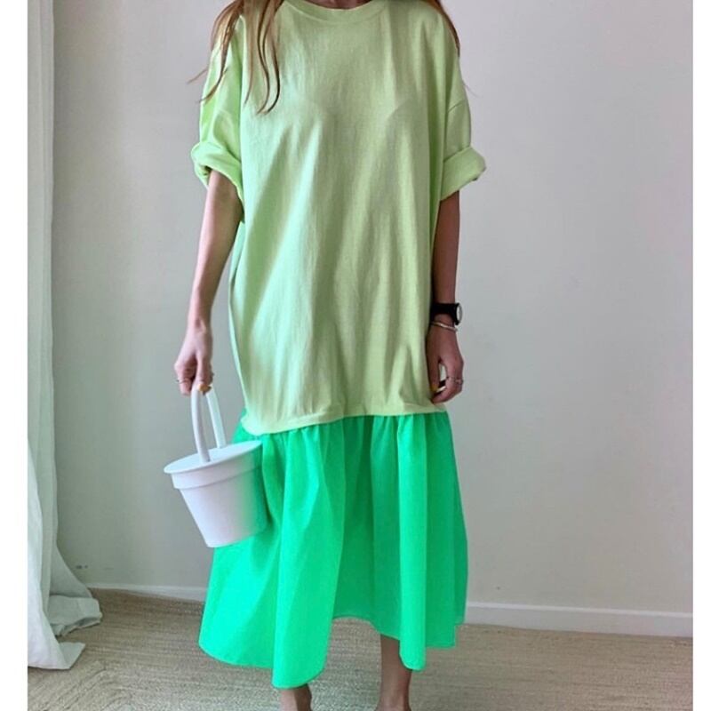 4カラー 蛍光 ラウンドネック ロング 半袖 ワンピース *on635