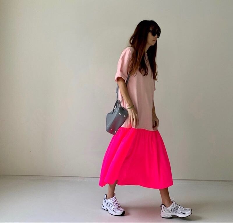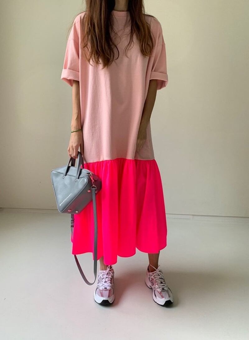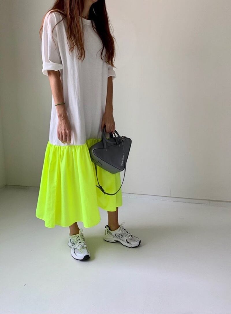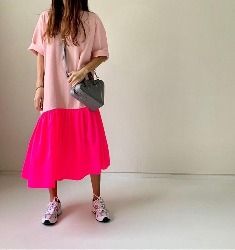 蛍光カラーが目を引くデザインのワンピース。