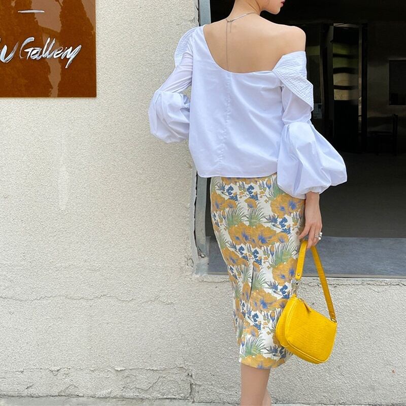 2カラー オフショルダー リボン 長袖 シャツ ブラウス *bl287