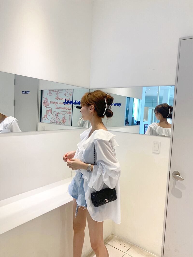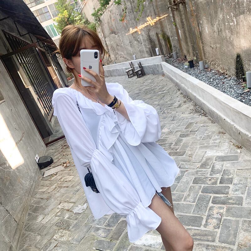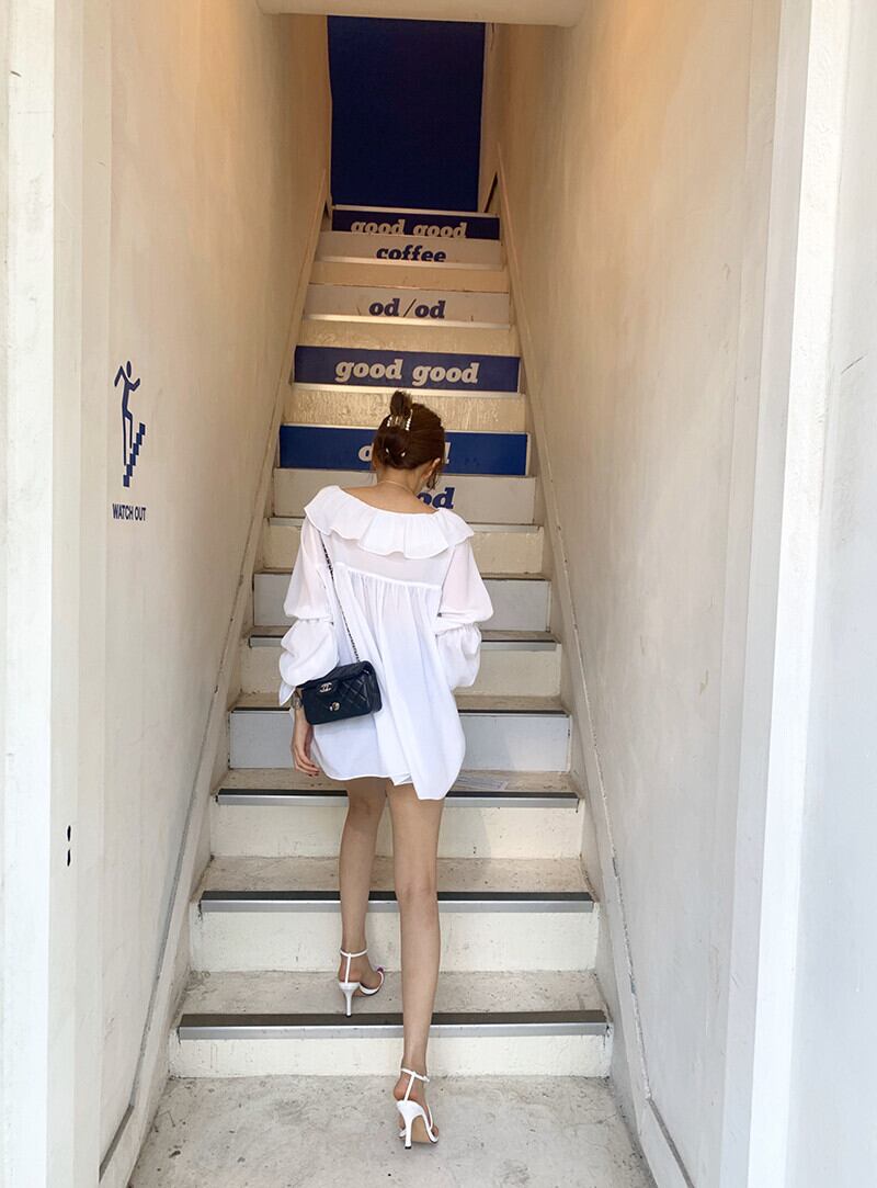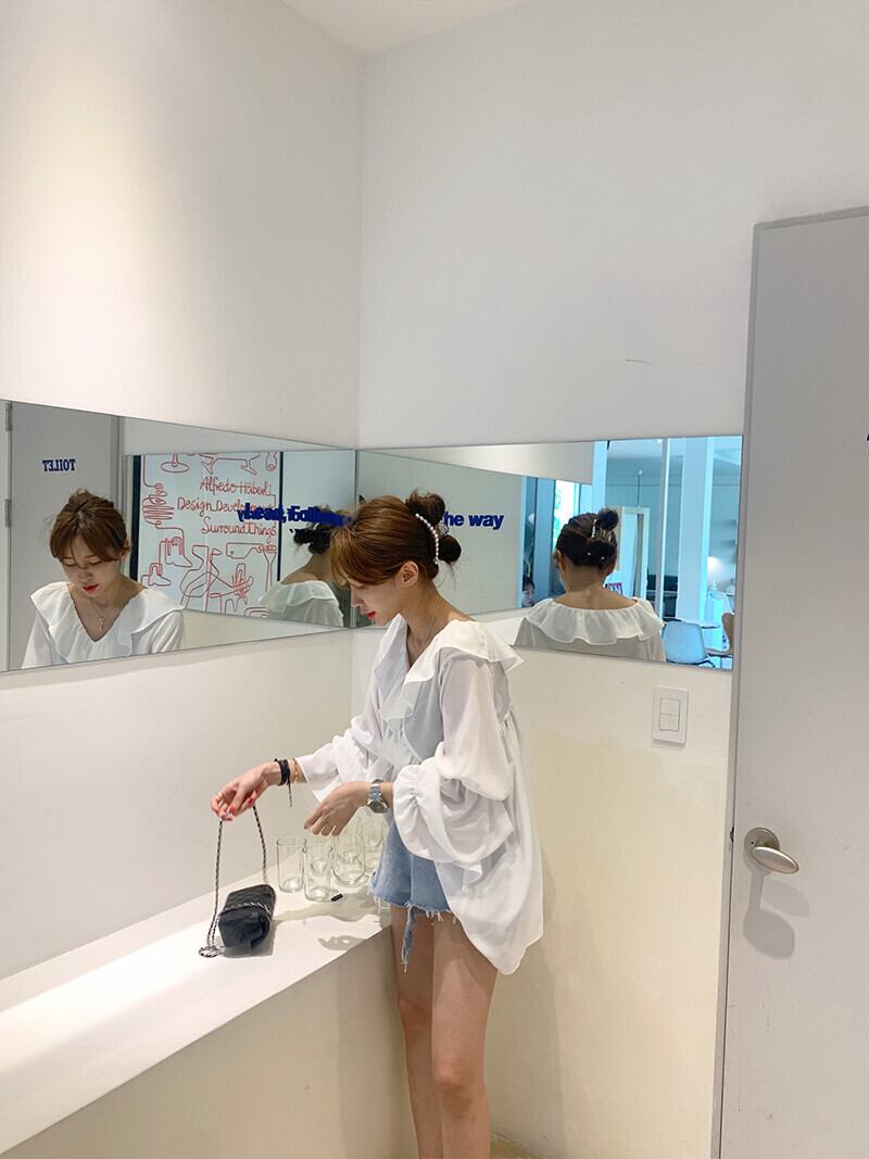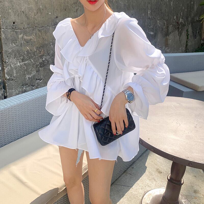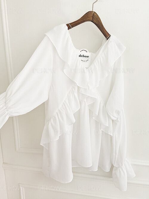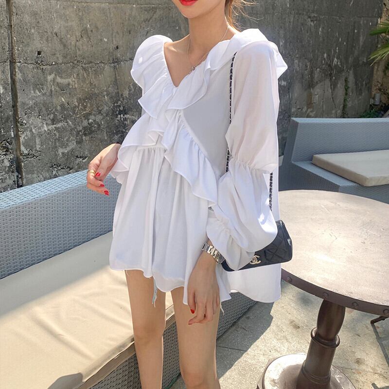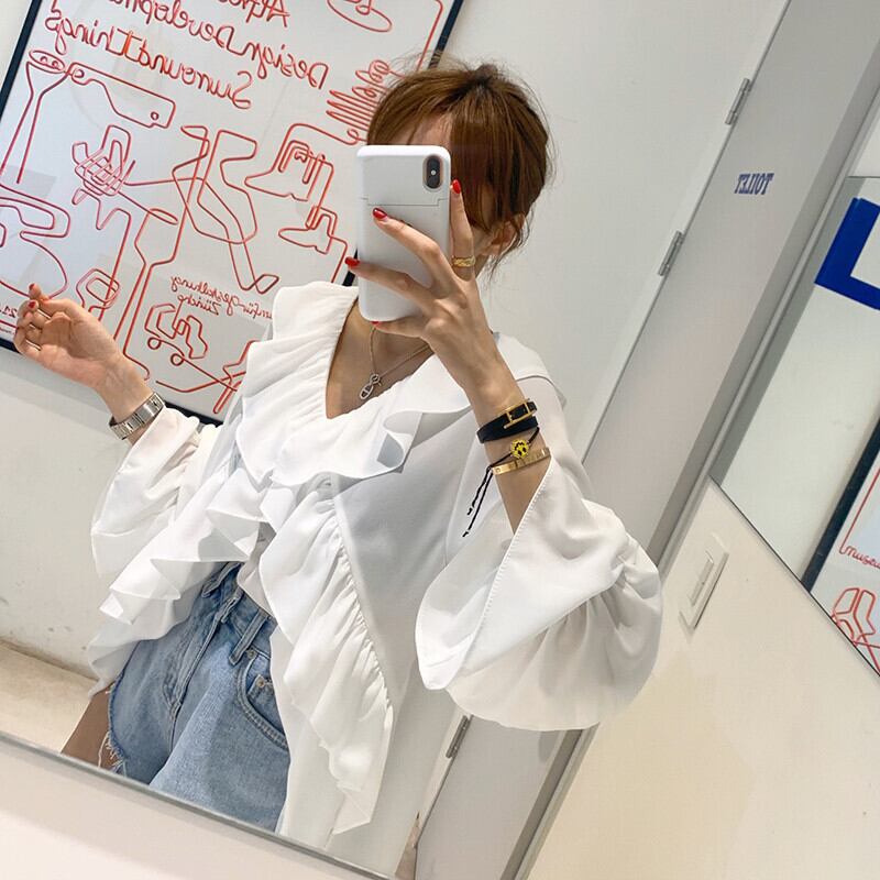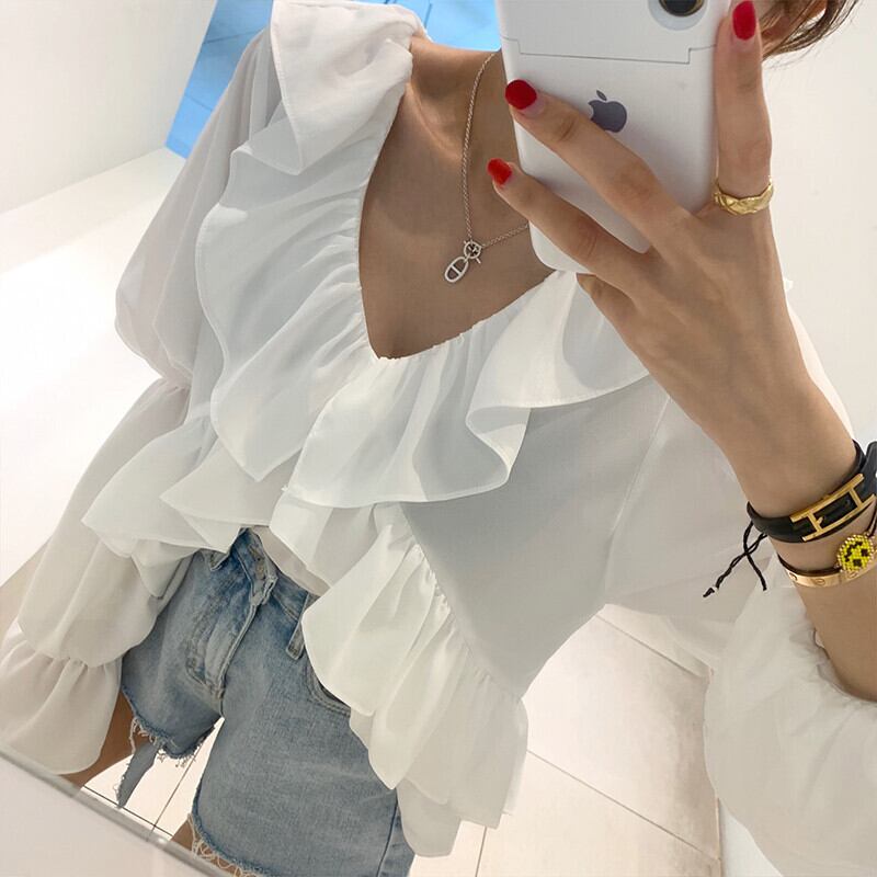 フリル Vネック シフォン 長袖 シャツ ブラウス *bl295