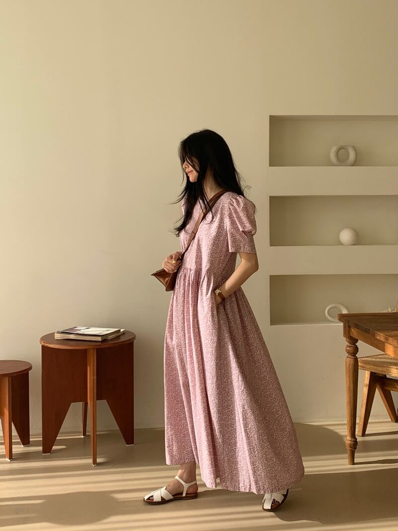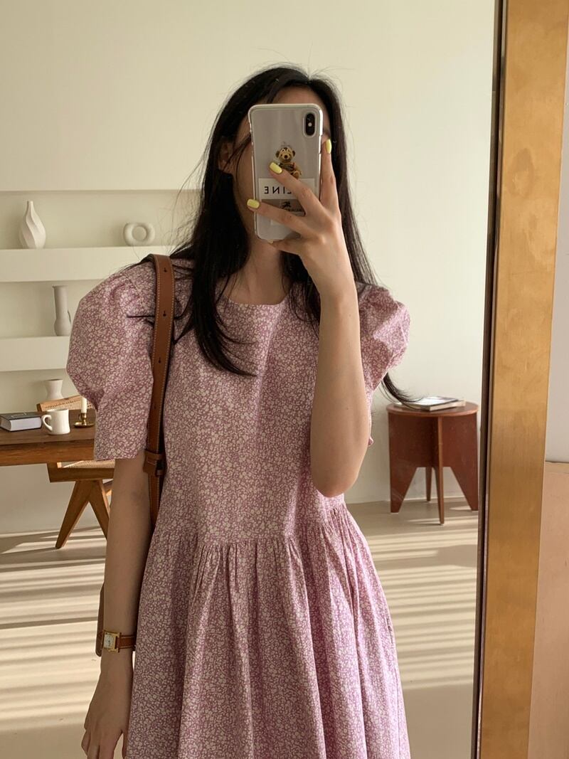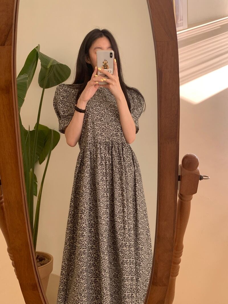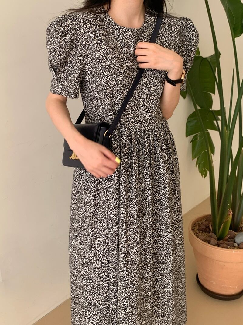 3カラー ラウンドネック 花柄 半袖 ワンピース *on650