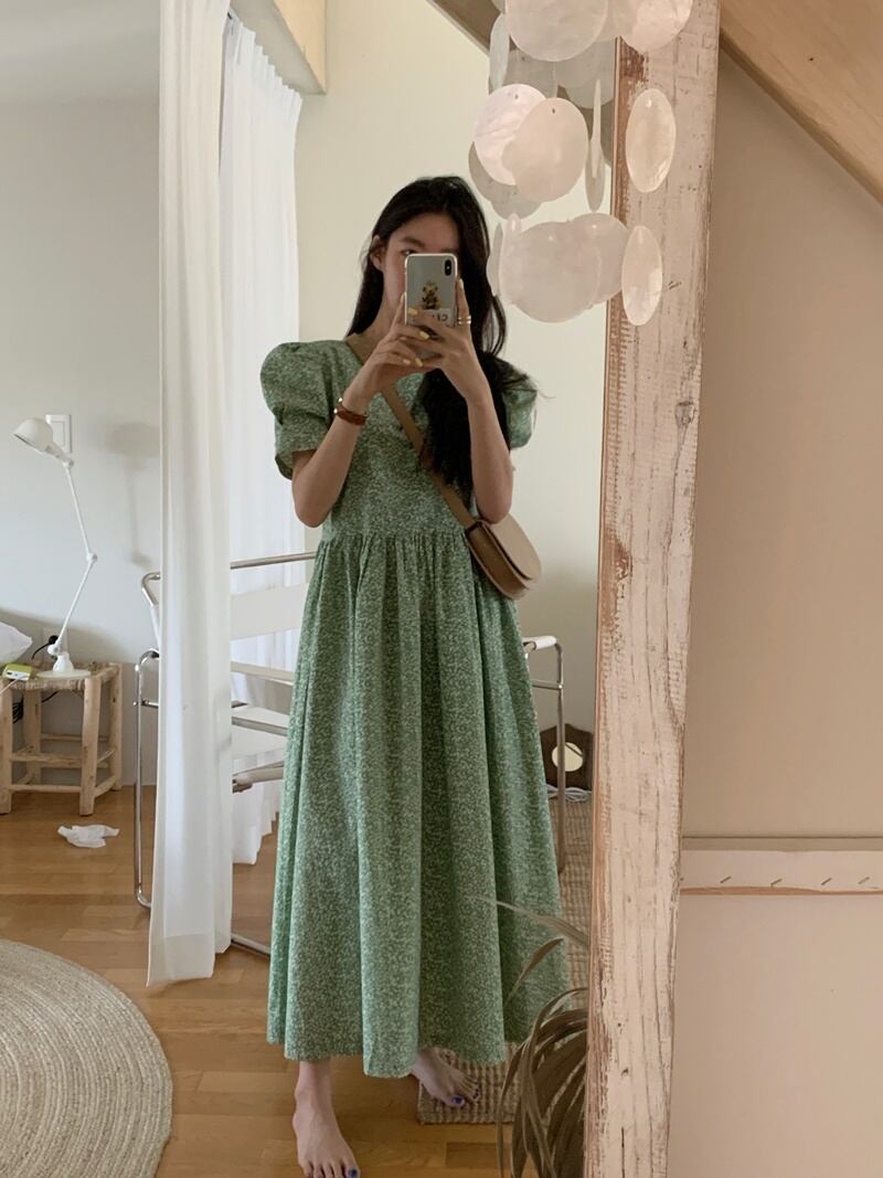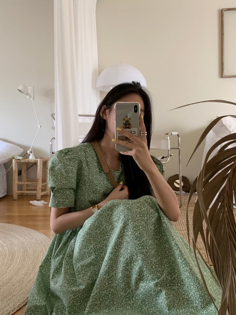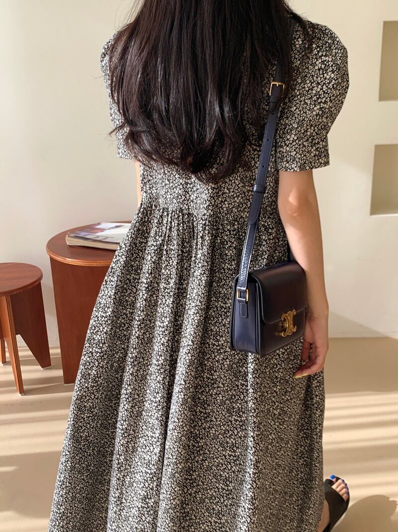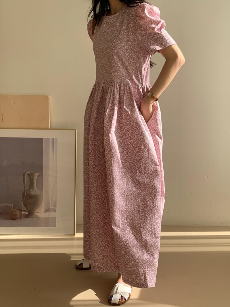 3カラー ラウンドネック 花柄 半袖 ワンピース *on650