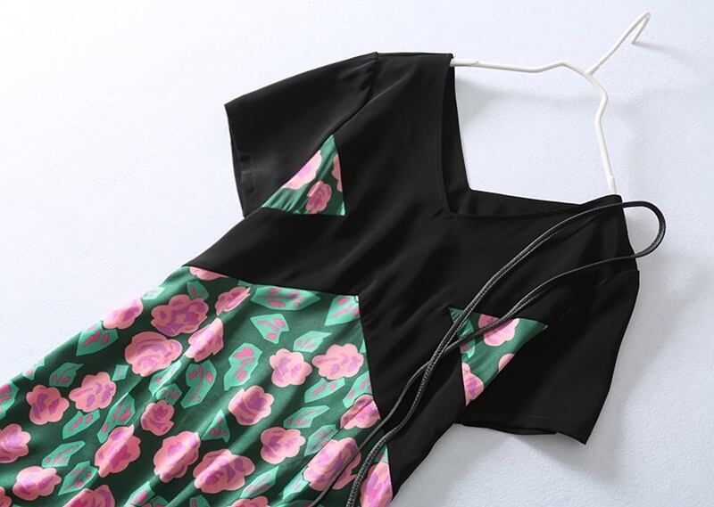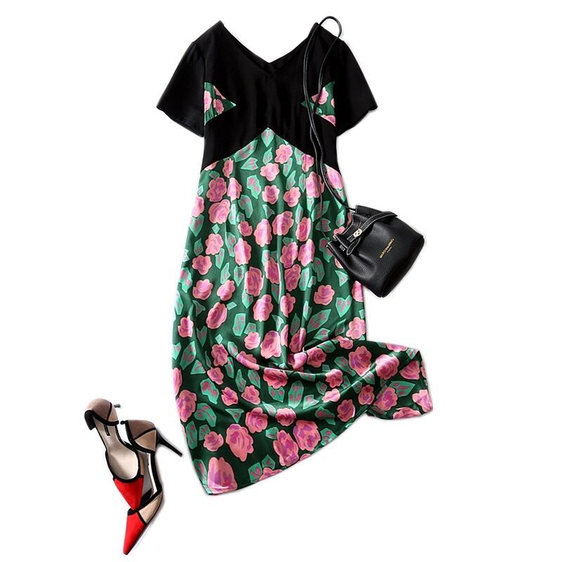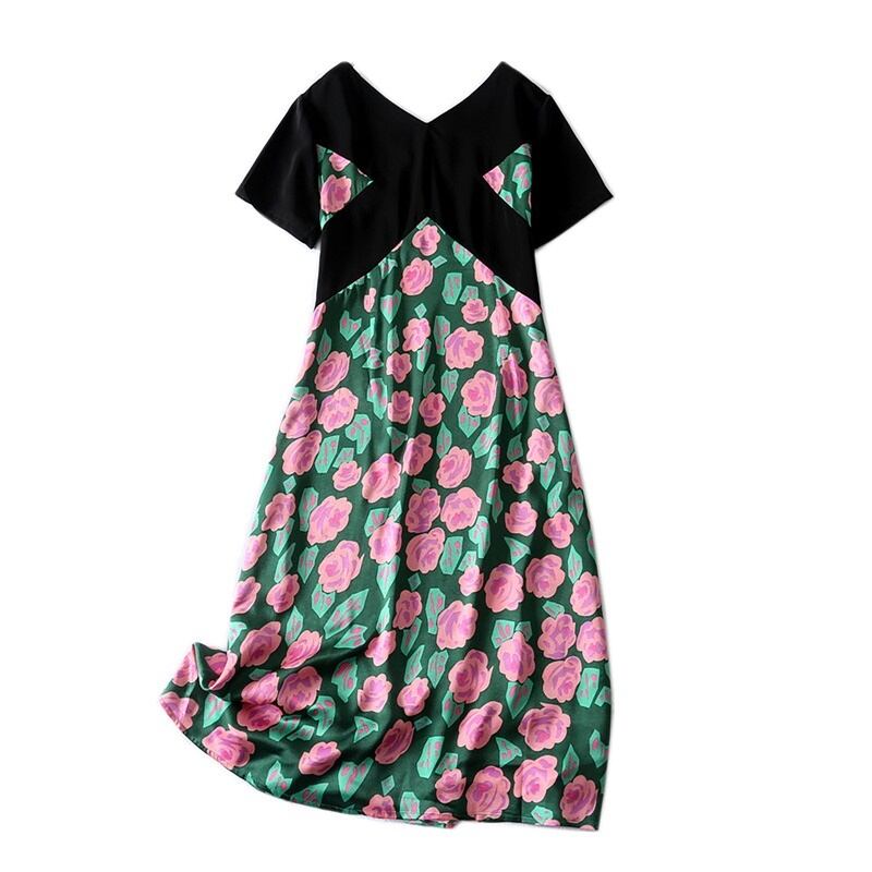 花柄 クロス Vネック 半袖 ワンピース *on658
