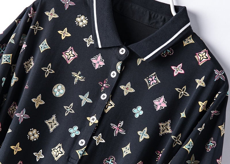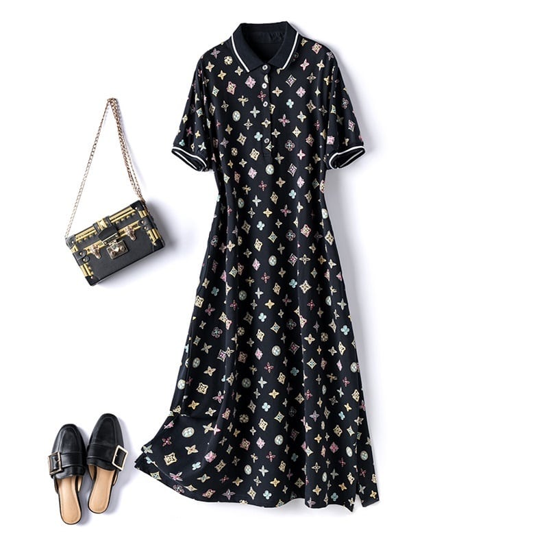 イラスト柄 襟付き Aライン 半袖 ワンピース *on659