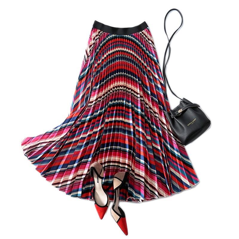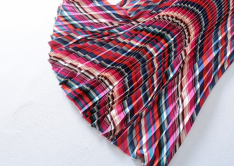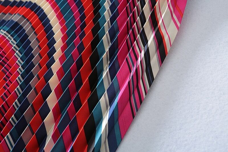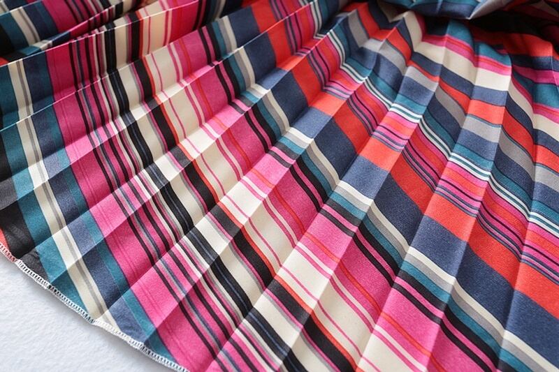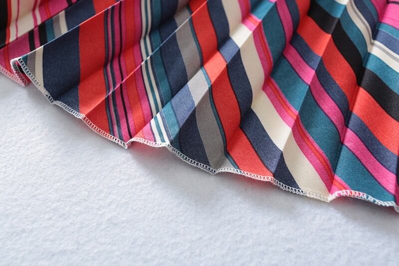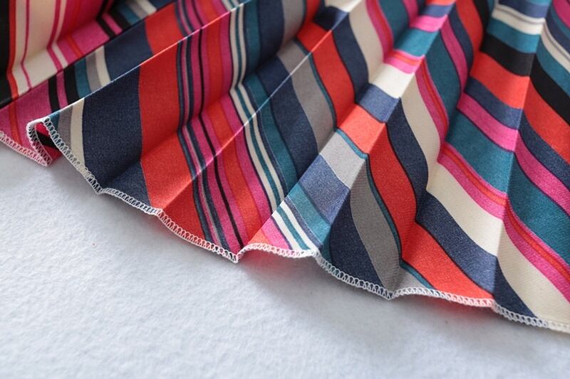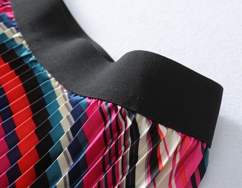 ストライプ プリーツ ハイウエスト Aライン スカート *sk143