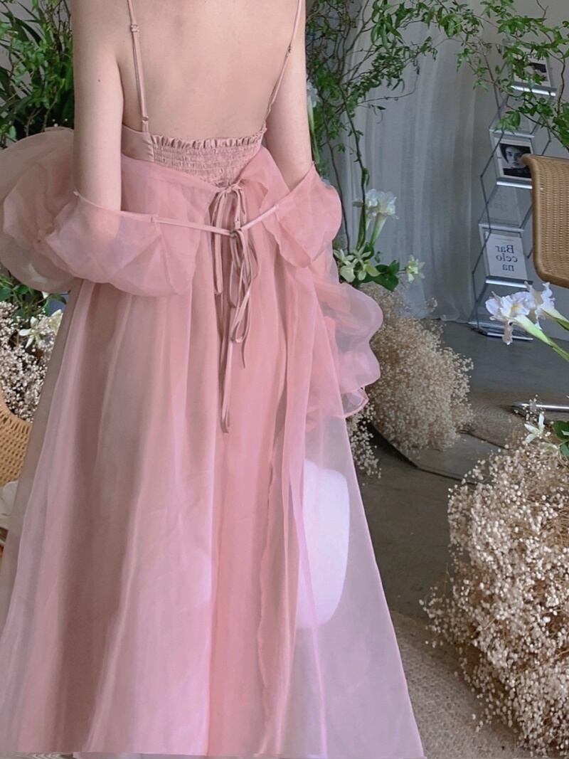 ほんのり透け感のある生地から上品に素肌が見えるエレガントな一着です。