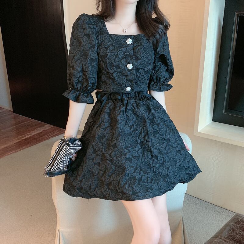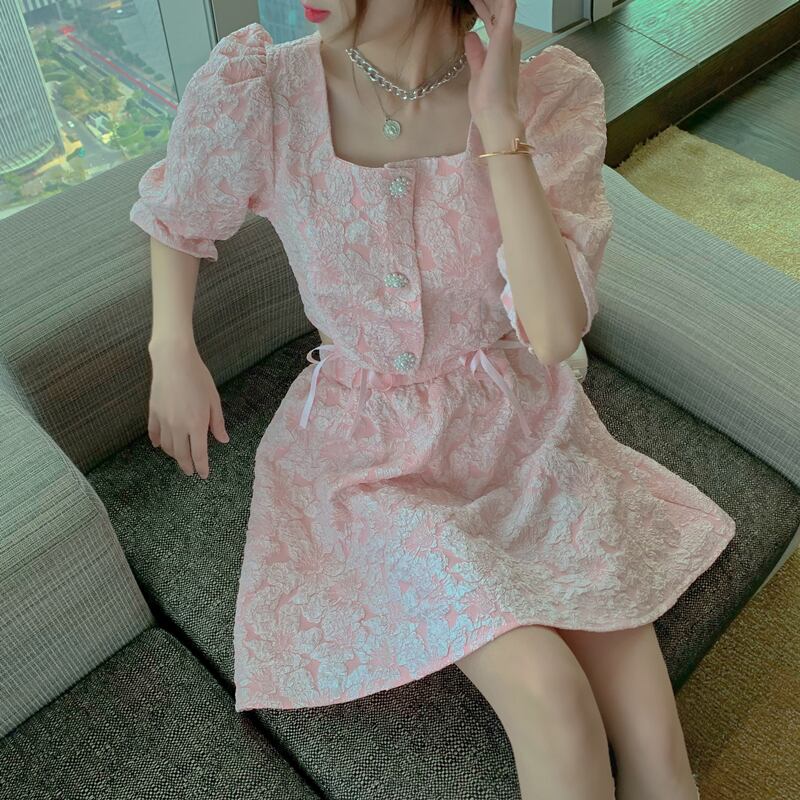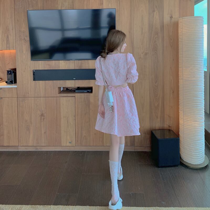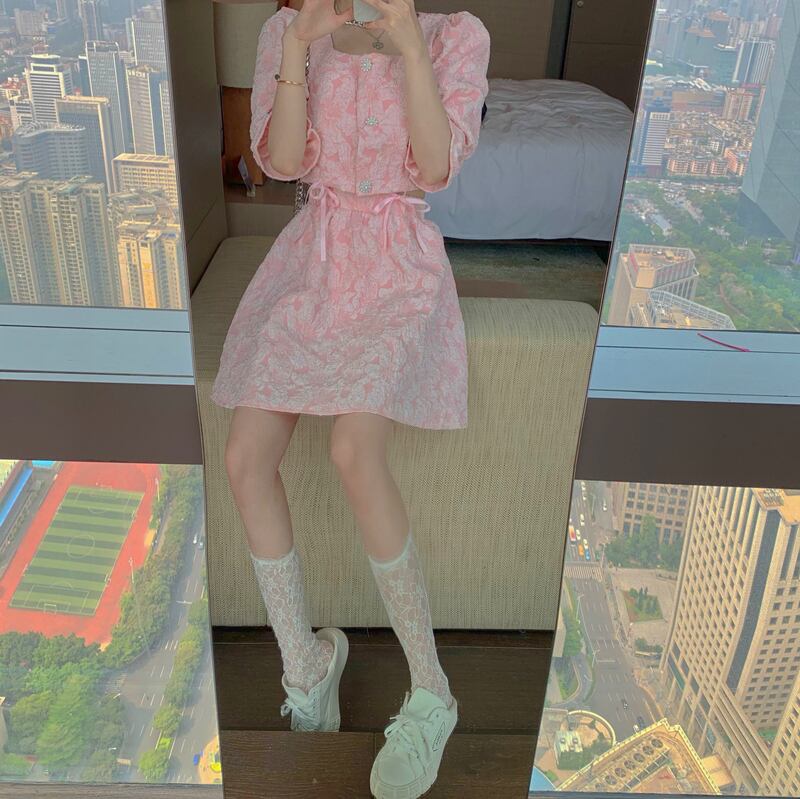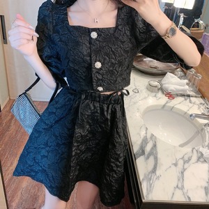 2カラー ツーピース 半袖 ブラウス 花柄 エンボス スカート セット *set053